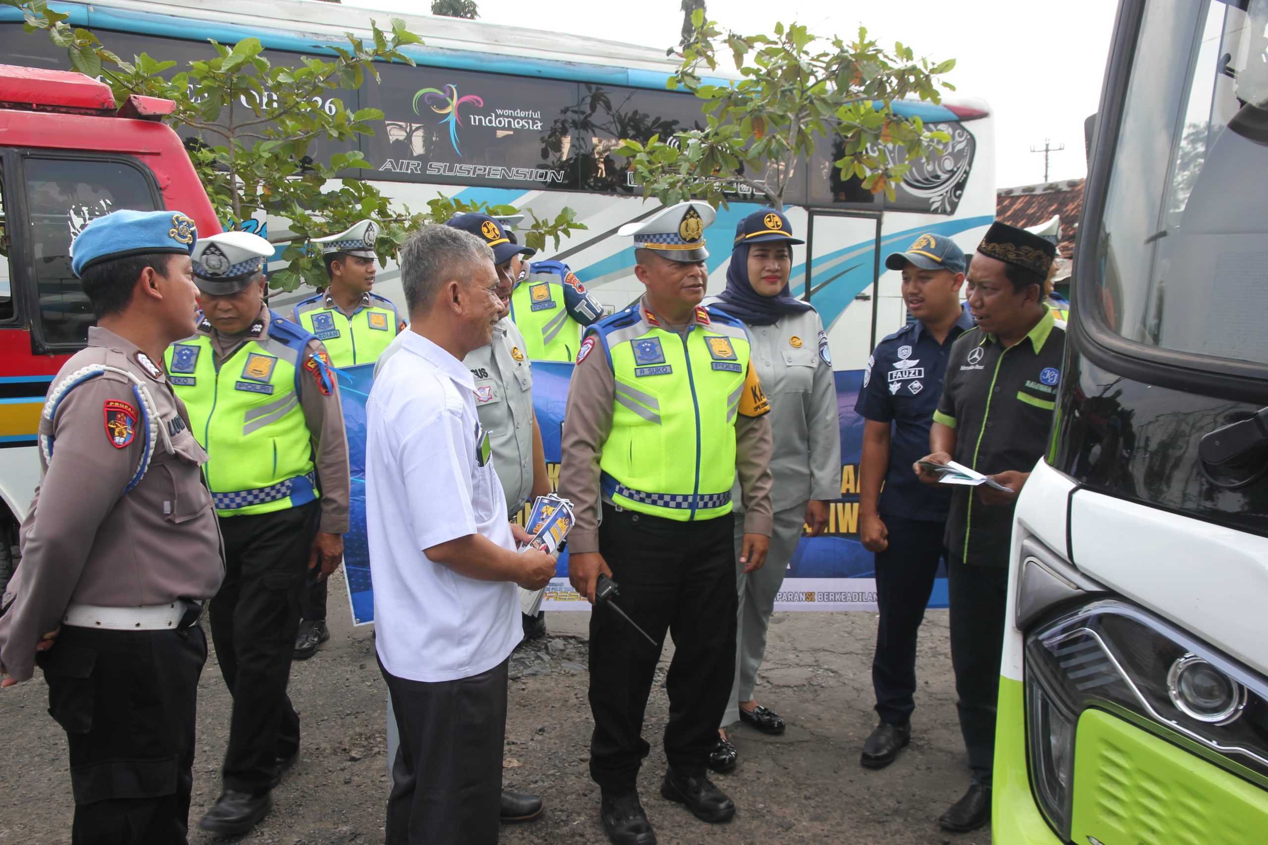 Demak,SaberPungli.net:Dalam rangka Ops keselamatan Candi 2025, Satlantas Polres Demak laksanakan kegiatan Rampcheck kendaraan bus angkutan umum bersama Dinas perhubungan, Jasa Raharja, UPPD dan Dokkes Polres Demak.