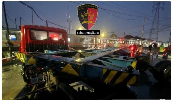Sementara dari arah timur melintas KA Harina yang menabrak bagian belakang truk gandeng tersebut.