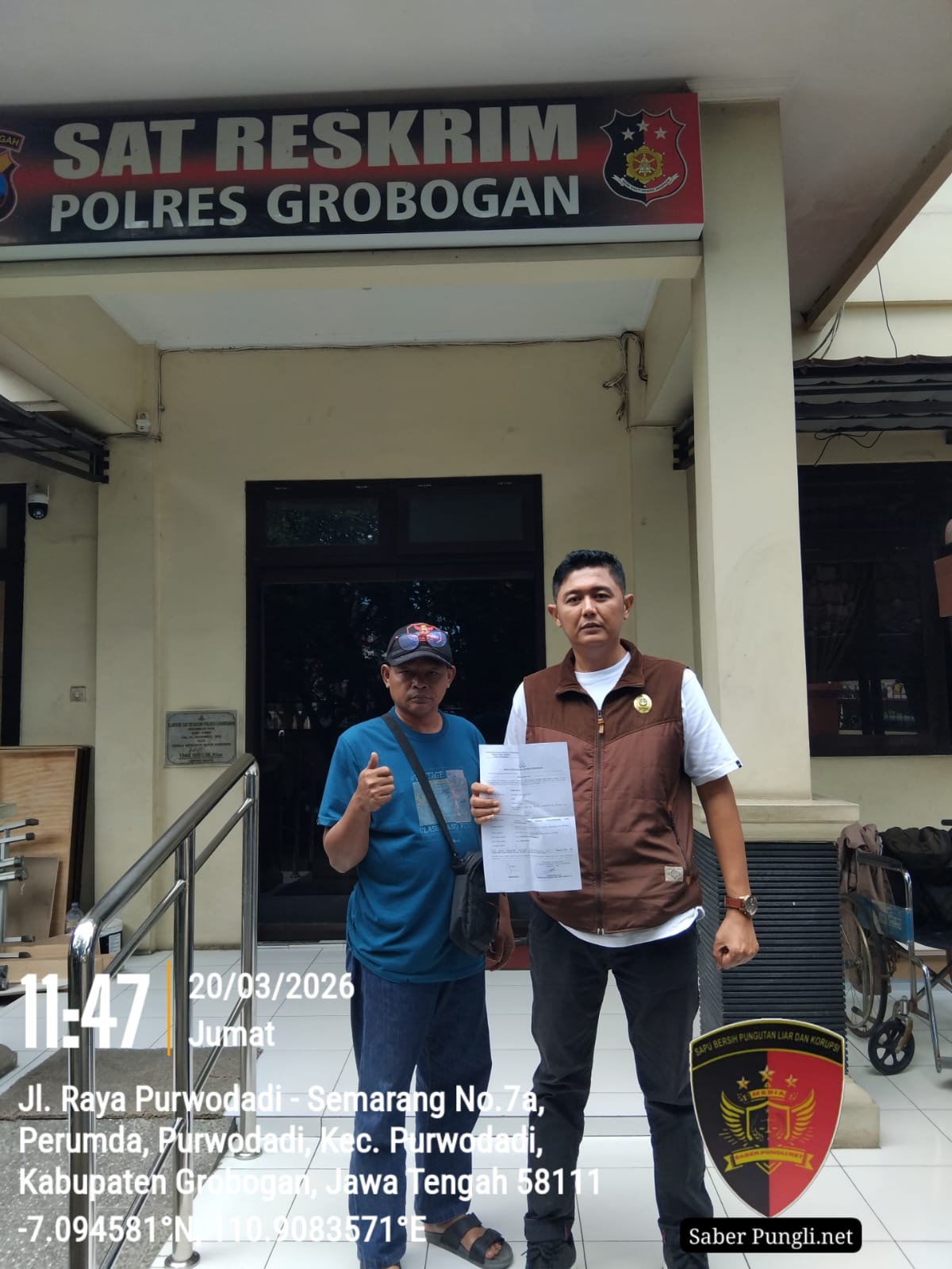 Korban telah menjalani visum sebagai bukti medis dan melaporkan kejadian ini ke Polres Grobogan pada 20 Maret 2026.