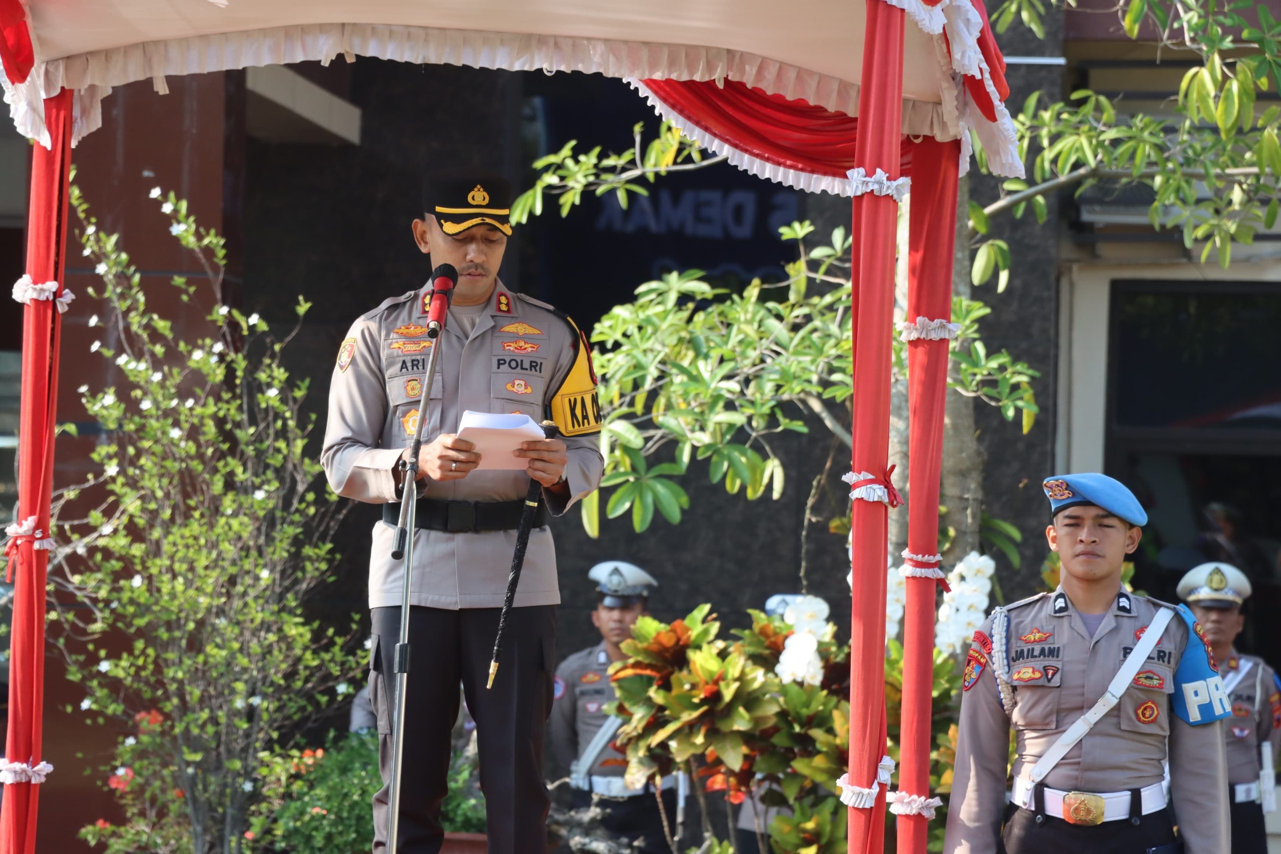 Apel Gelar Pasukan dipimpin langsung oleh Kapolres Demak AKBP Ari Cahya Nugraha, serta diikuti personel gabungan TNI, Polri, Dishub dan Satpol-PP.