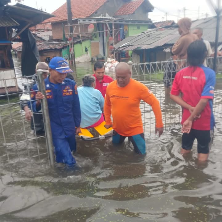 Pekalongan,SaberPungli.net:Hujan deras yang mengguyur Kota Pekalongan selama tiga hari terakhir menyebabkan banjir di sejumlah wilayah. Ditpolairud Polda Jateng bersama BPBD dan stakeholder terkait bergerak cepat mengevakuasi warga terdampak ke tempat yang lebih aman, terutama kelompok rentan seperti lansia, anak-anak, ibu hamil, dan warga yang sedang sakit.