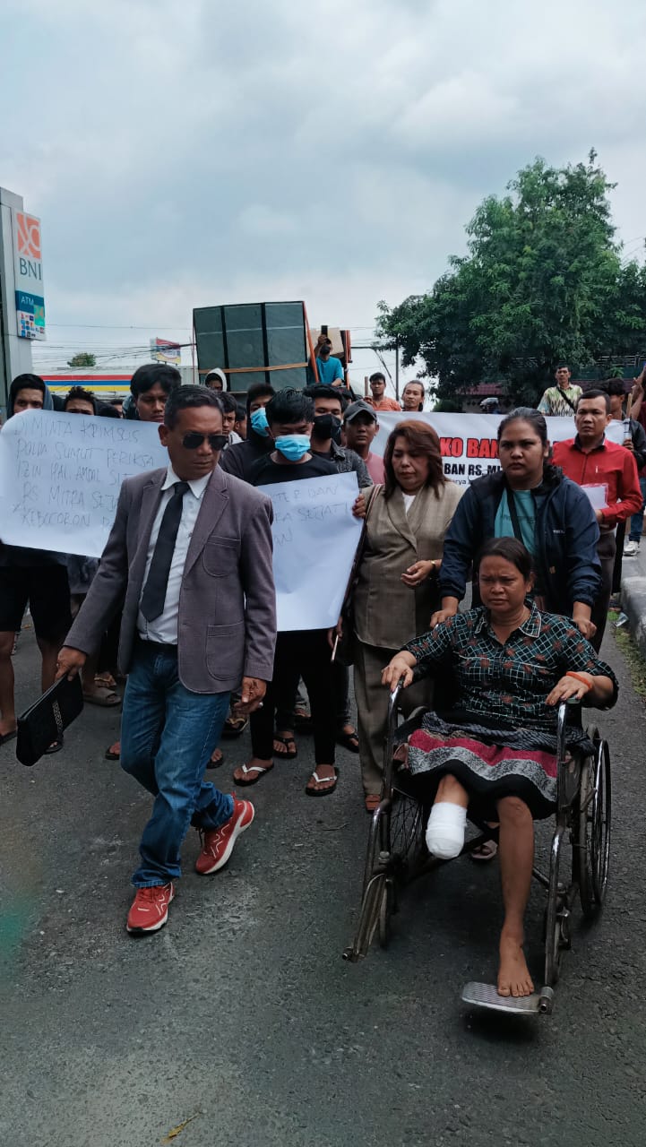 Medan,SaberPungli.net:Korban dugaan malapraktik, Julita Br Surbakti dan massa Jaringan Pemuda dan Mahasiswa Deliserdang (JPMD) menggelar aksi unjuk rasa di depan Mapoldasu, Senin (24/3). Dalam salah satu tuntutannya massa mendesak agar pihak Poldasu segera menindaklanjuti laporan korban atas dugaan kasus malpraktik oleh dokter dan manajemen Rumah Sakit Mitra Sejati dengan nomor register Nomor: LP/STTLP/B/303/III/2025/SPKT/Polda Sumatera Utara.