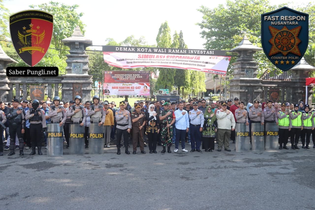 Demak [SaberPungli.net] Kepolisian Resor (Polres) Demak, Jawa Tengah, menggelar simulasi Sistem Pengamanan Kota (Sispamkota) di Kantor Bupati Demak, Kamis (23/4/2026).