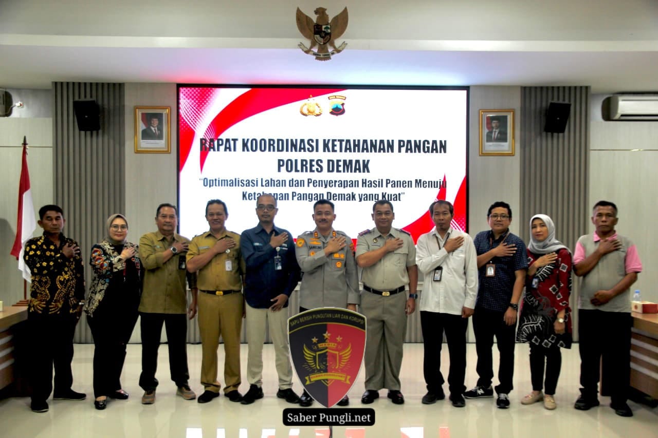 Demak [SaberPungli.net] Kepolisian Resor Demak, Jawa Tengah, menggelar rapat koordinasi ketahanan pangan di Aula Wicaksana Laghawa, Selasa (14/4/2026).