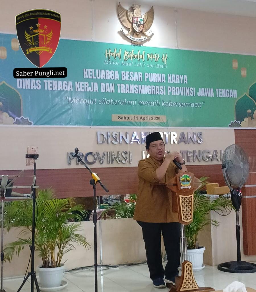 SEMARANG [SaberPungli.net] Dinas Tenaga Kerja dan Transmigrasi (Disnakertrans) Provinsi Jawa Tengah menggelar kegiatan Halal Bihalal bersama serikat pekerja dan para mantan pejabat di kantor Disnakertrans, Jalan Pahlawan, Semarang, pada Sabtu (11/4/2026).