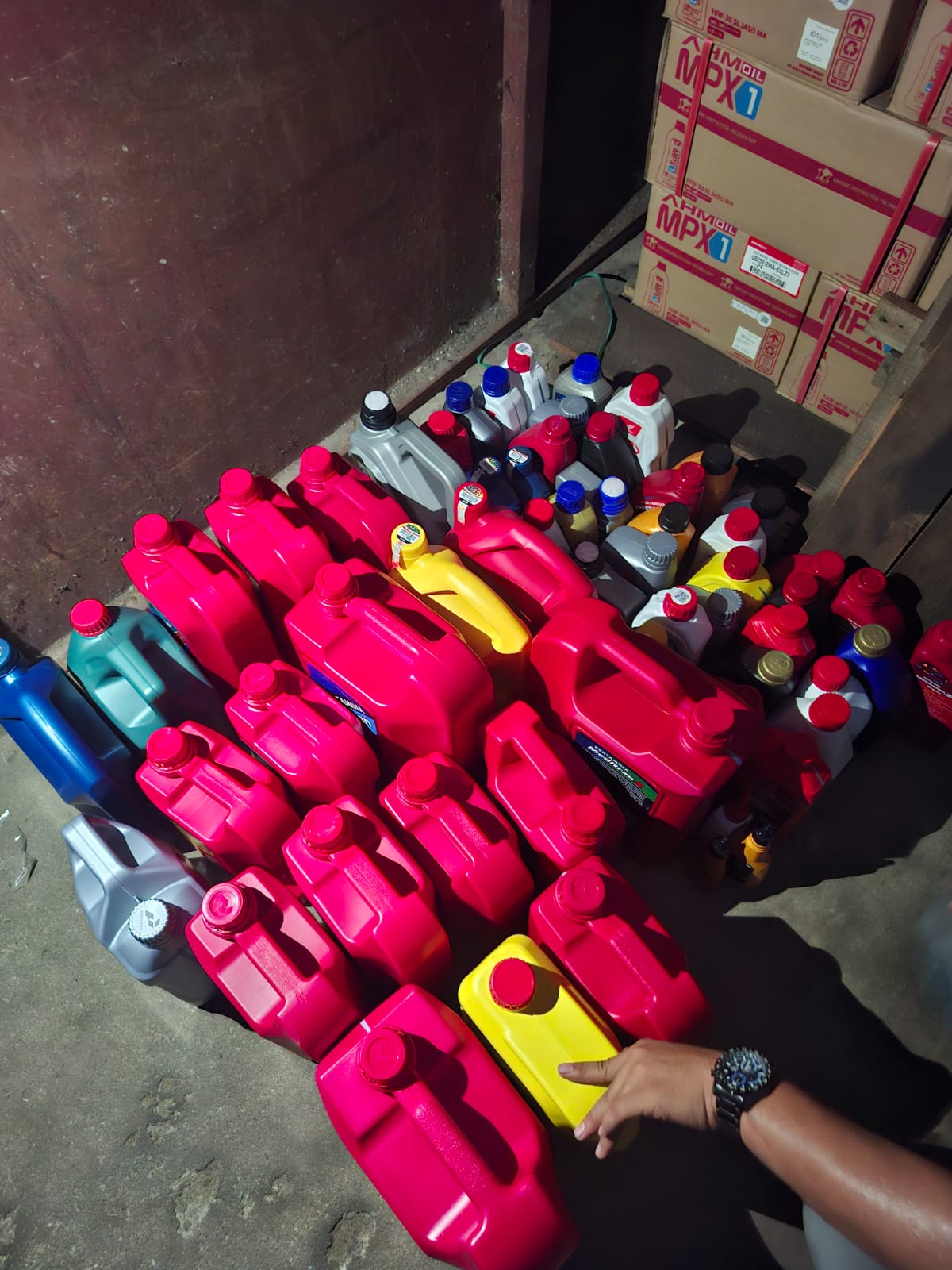 dari hasil penghitungan sampel barang bukti, total 165 jenis minyak pelumas untuk kendaraan roda empat dan roda dua berhasil diamankan. Rincian penemuan di setiap gudang adalah sebagai berikut: