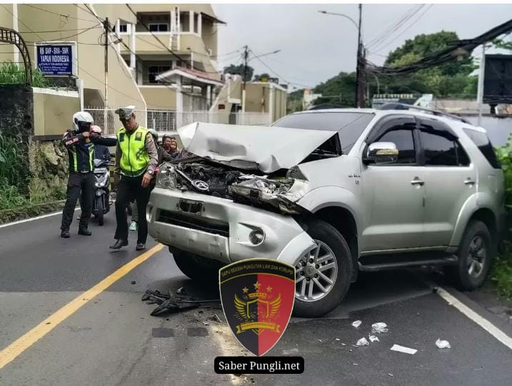 Truk tidak kuat menanjak lalu mundur menabrak mobil Fortuner.
