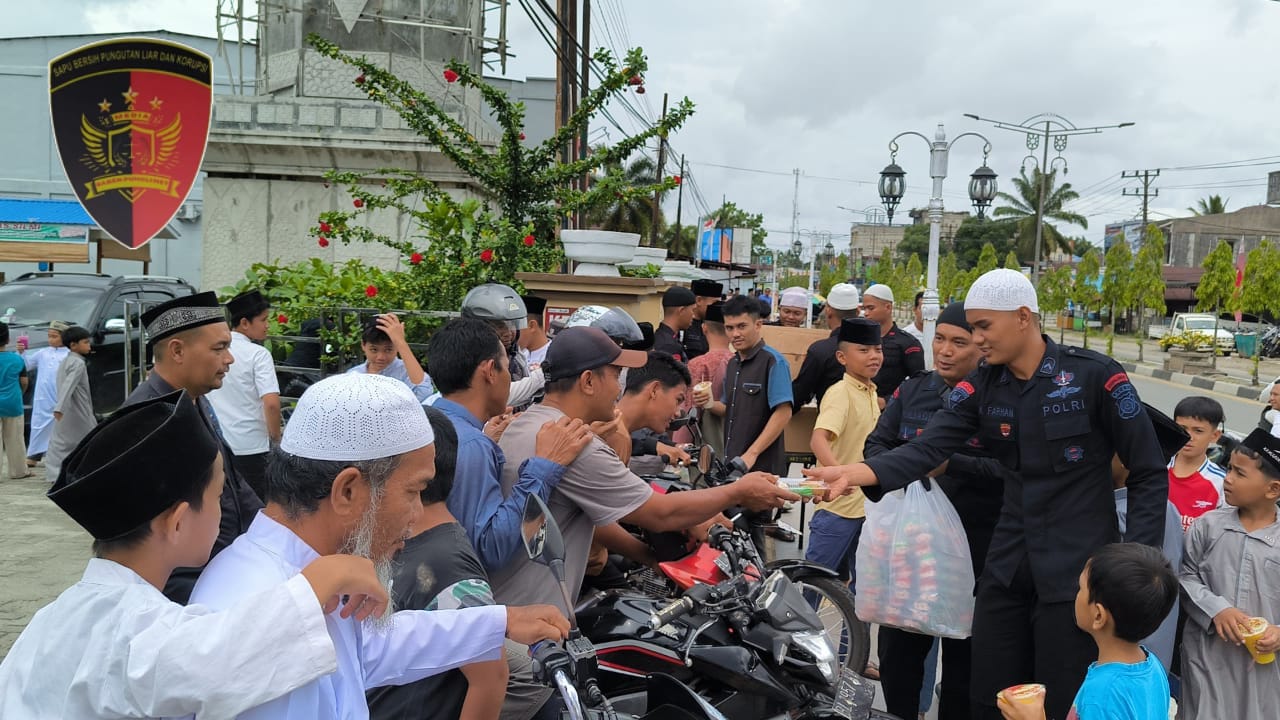 > “Kegiatan ini bertujuan menjalin silaturahmi dan menumbuhkan rasa kepedulian terhadap sesama. Di hari yang penuh berkah ini, kami ingin berbagi kebaikan dengan memberikan jus buah dan snack sebagai wujud perhatian Polri kepada masyarakat,” ujar AKP Jaya Putra.