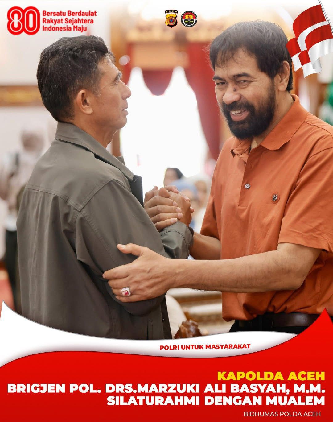 Banda Aceh, SaberPungli.net: Kepala Kepolisian Daerah (Kapolda) Aceh, Brigjen Pol Drs. Marzuki Ali Basyah, melakukan silaturahmi dengan Gubernur Aceh, Muzakir Manaf atau yang akrab disapa Mualem, di Pendopo Gubernur Aceh, Kota Banda Aceh, Minggu, 24 Agustus 2025.