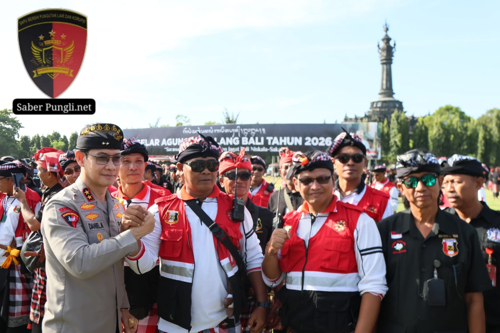BALI [SaberPungli.net] Didampingi Pejabat Utama (PJU) Polda Bali, Kepala Kepolisian Daerah Bali, Irjen. Pol. Daniel Adityajaya, S.H., S.I.K., M.Si. menghadiri Gelar Agung Pecalang Bali yang diselenggarakan di Lapangan Puputan Margarana Niti Mandala Renon, Denpasar, Sabtu (7/3/2026).