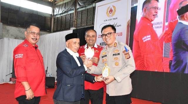 Kapolres Aceh Timur AKBP Nova Suryandaru, S.I.K. menghadiri pelantikan Ketua dan Pengurus Komite Olahraga Nasional Indonesia (KONI) Kabupaten Aceh Timur periode 2025-2029 di Gedung Idi Sport Center, Senin, (10/02/2025).