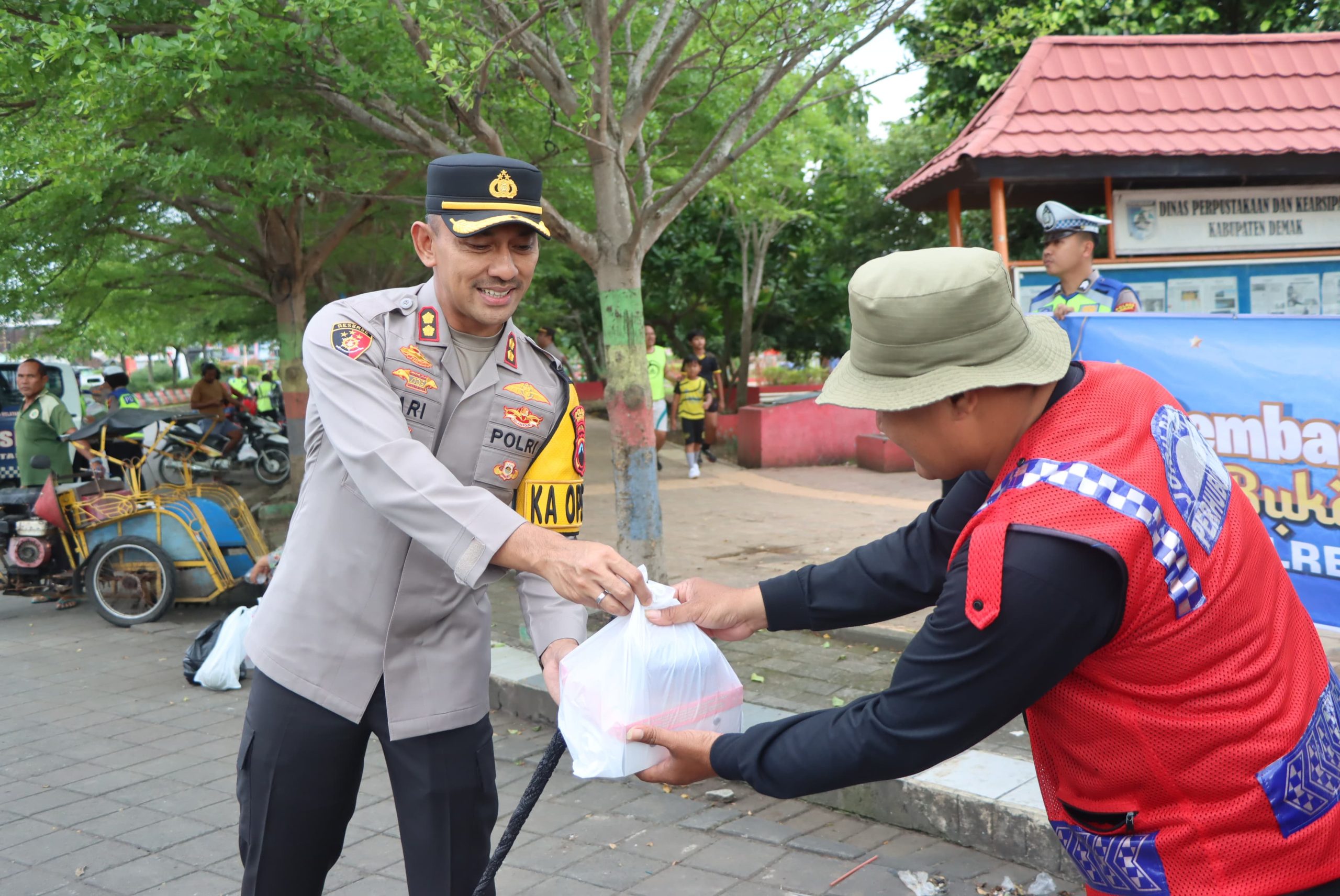 Demak,SaberPungli.net:Kapolres Demak, AKBP Ari Cahya Nugraha, terus berbagi kebaikan di bulan Ramadhan. Kali ini, ia membagikan takjil kepada masyarakat di depan Tourist Information Center (TIC) Demak, Minggu (23/3/2025).