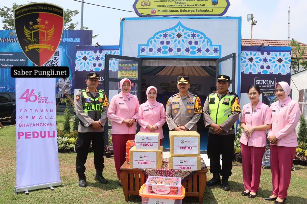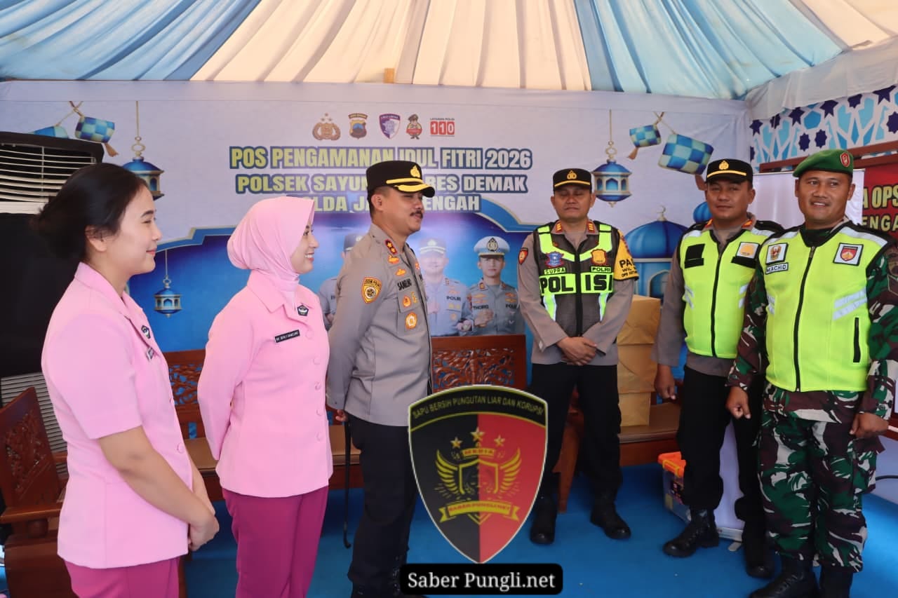 Demak [SaberPungli.net] Kapolres Demak AKBP Samel bersama Ketua Bhayangkari Cabang Demak Ny. Serly Samelino meninjau sejumlah Pos Pengamanan (Pospam) lebaran Idul Fitri 1447 Hijriah di Kabupaten Demak, Selasa (17/3/2026).