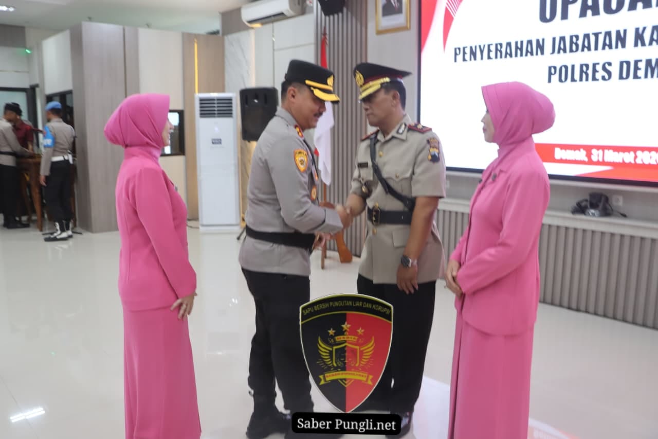 DEMAK [SaberPungli.net] Kepolisian Resor Demak menggelar upacara penyerahan jabatan Kapolsek Guntur yang sebelumnya dijabat Kompol Muhammad Idzhar di Aula Wicaksana Laghawa, Selasa (31/3/2026).