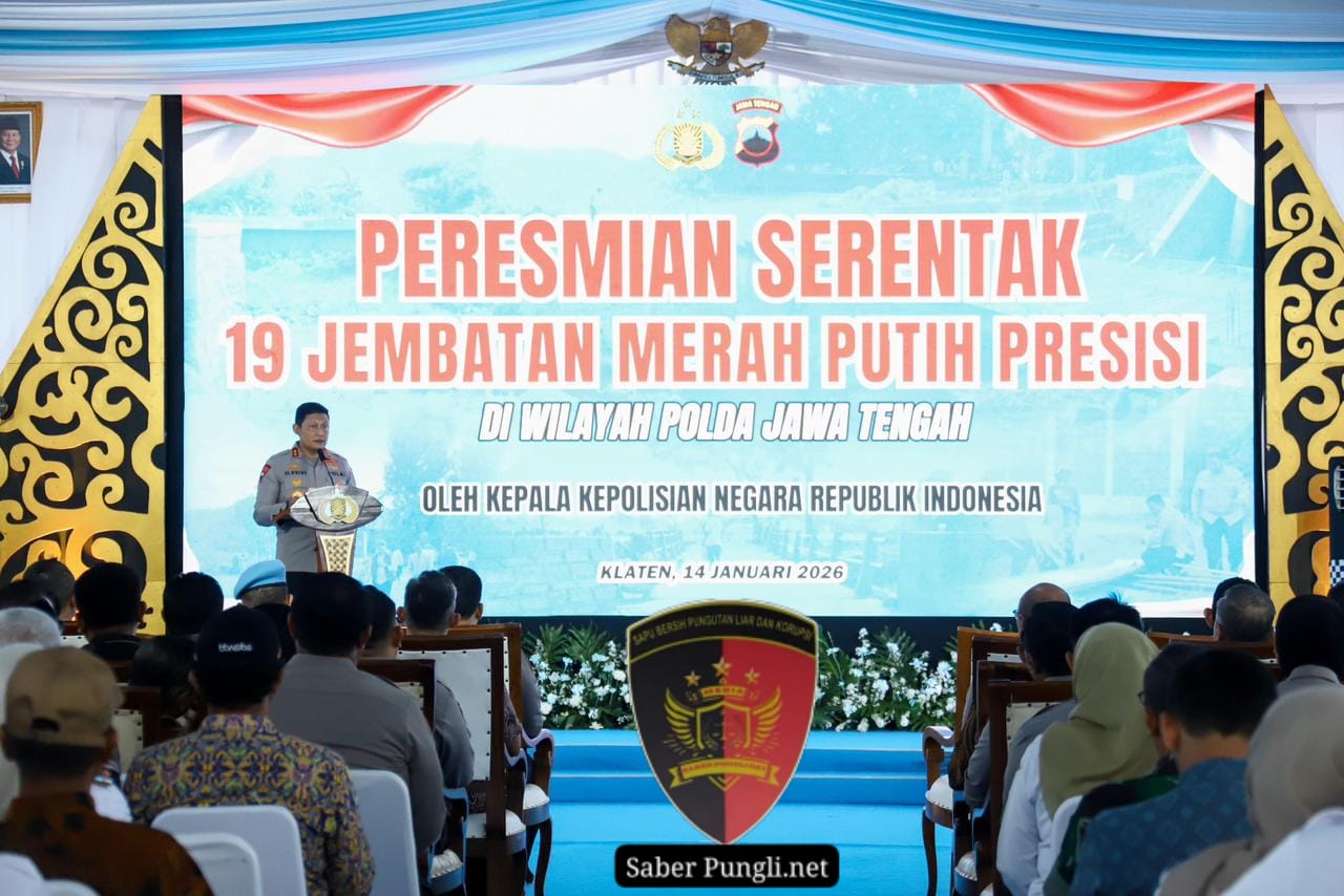Polda Jateng [SaberPungli.net] Klaten | Kapolri Jenderal Polisi Listyo Sigit Prabowo meresmikan secara serentak 19 Jembatan Merah Putih Presisi yang telah selesai dibangun di berbagai wilayah Jawa Tengah, Rabu (14/1/2026).