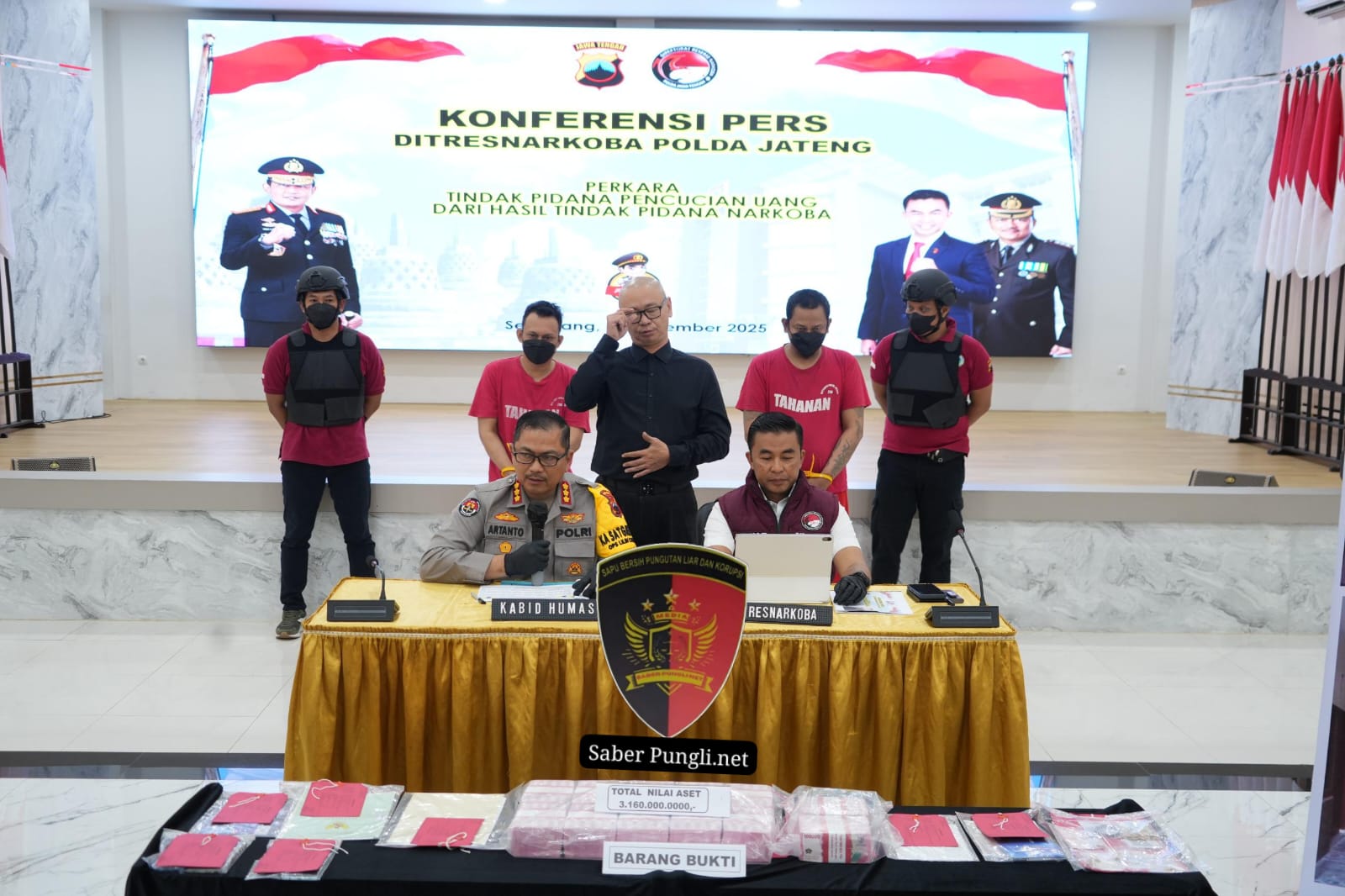 SEMARANG [SaberPungli.net] Direktorat Reserse Narkoba Polda Jawa Tengah mengungkap tindak pidana pencucian uang (TPPU) yang bersumber dari kejahatan Narkotika dengan nilai aset mencapai lebih dari Rp 3,1 miliar. Pengungkapan tersebut disampaikan dalam konferensi pers yang digelar di Gedung Borobudur Mapolda Jateng, Rabu siang (31/12/2025).