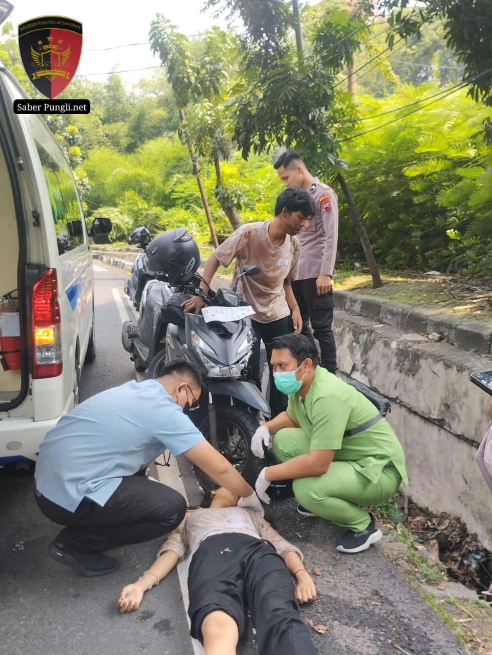 Insiden tersebut melibatkan sepasang mahasiswa pria dan wanita yang mengendarai sepeda motor beat H- 4273-MX