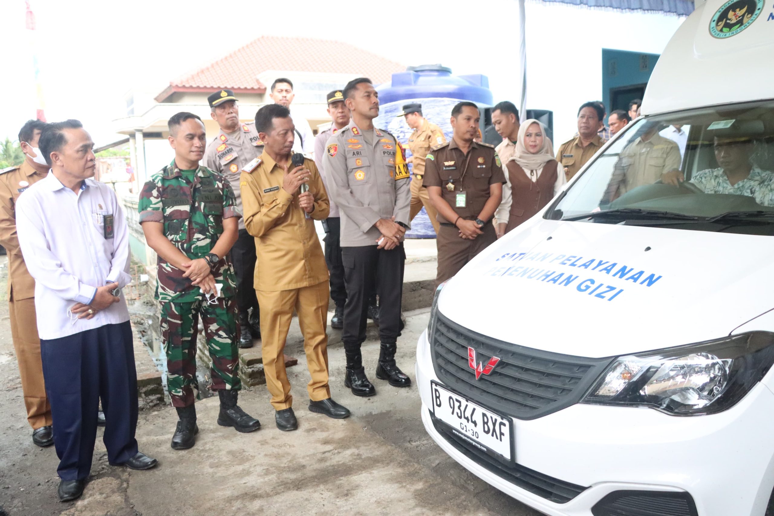 Sekda Demak Akhmad Sugiharto didampingi Dandim dan Kapolres Demak menyampaikan bahwa program ini bertujuan untuk memastikan para siswa mendapatkan asupan gizi yang cukup melalui MBG dari pemerintah.