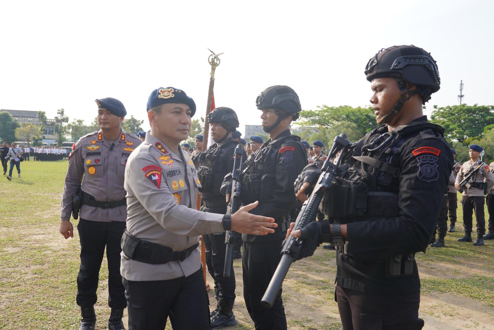 Turut hadir Wakapolda Riau Brigjen Pol Adrianto Jossy Kusumo, S.H., M.Han. Karo Ops Polda Riau Kombes Pol Ino Harianto,S.I.K., M.M. Dansat Brimob Polda Riau Kombes Pol I Ketut Gede Adi Wibawa, S.I.K., dan para Pejabat Utama Polda Riau