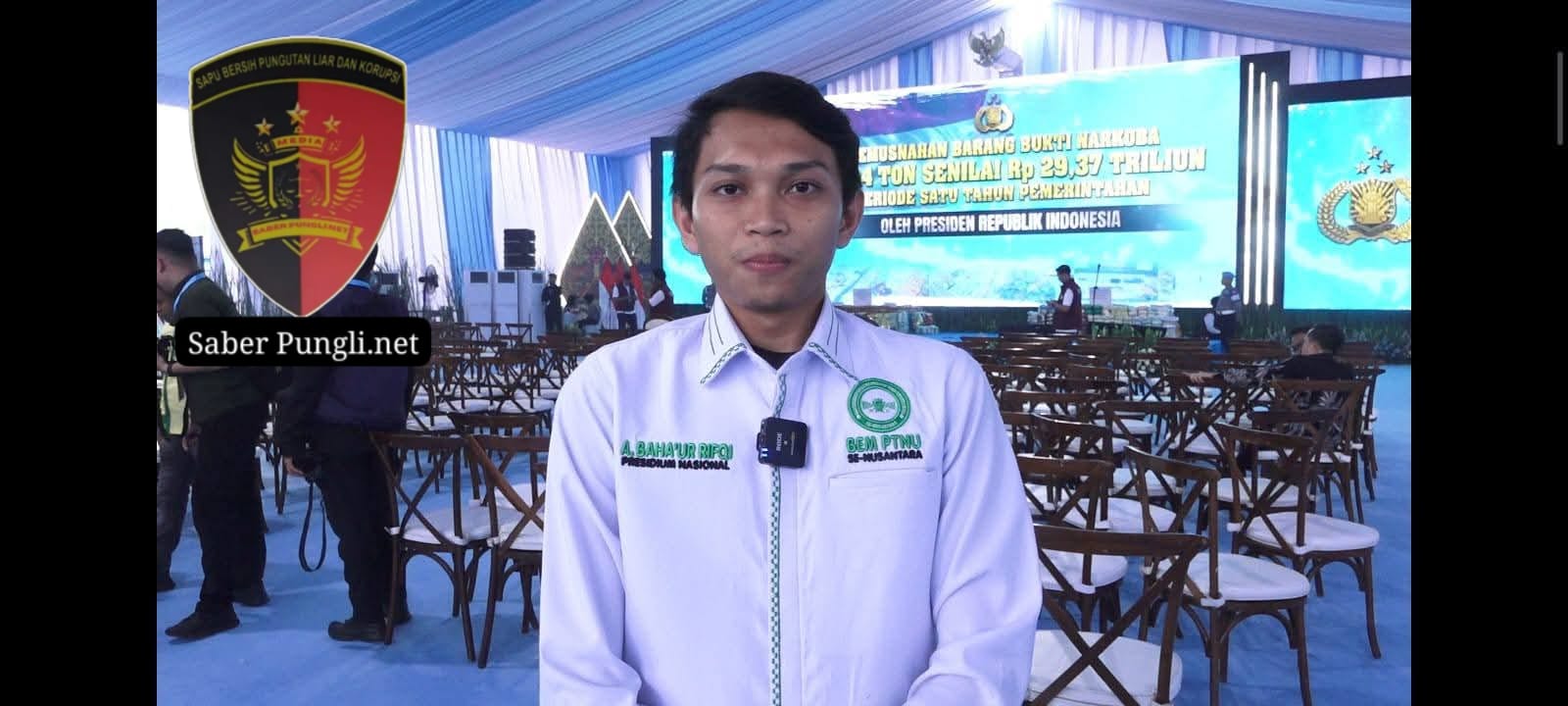Jakarta [SaberPungli.net] Presidium Nasional Badan Eksekutif Mahasiswa Perguruan Tinggi Nahdlatul Ulama (BEM PTNU) menyampaikan apresiasi dan dukungan penuh terhadap langkah tegas Polri dalam pemberantasan narkoba, termasuk kegiatan pemusnahan barang bukti narkotika yang dipimpin langsung oleh Presiden Republik Indonesia, Rabu (29/10).