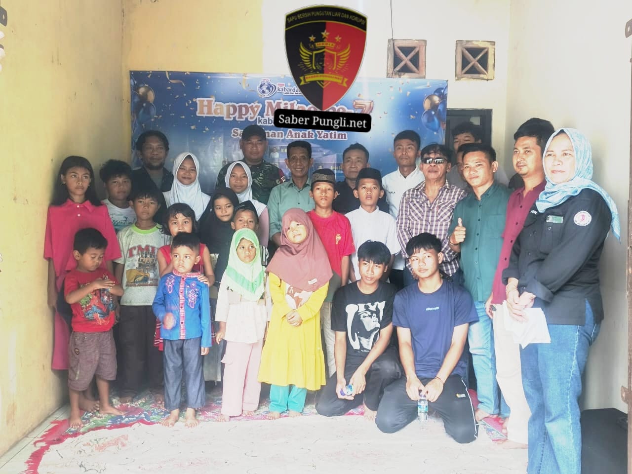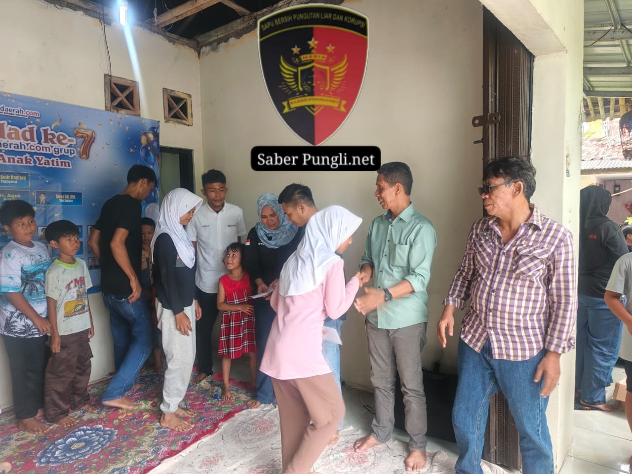 Serang [SaberPungli.net] Media Kabar Daerah Group merayakan hari jadi yang ke-7 dengan menggelar penyaluran santunan kepada anak yatim yang tinggal di wilayah Kecamatan Catang, kabupaten Serang. Acara berbagi ini dilaksanakan langsung di sekretariat Kabardaerah Group, kecamatan Catang, Kabupaten Serang, dihadiri oleh Seluruh jajaran Media Kabardaerah Group, Sekmat Bahrul Ulum, kecamatan Tujung Teja, Babinsa desa Bojong Catang Koptu Ilham Asrori, Ketua BPD desa Bojong Catang Toto Hartono, serta sekitar 30 anak penerima bantuan. Sabtu, 27 Desember 2025.