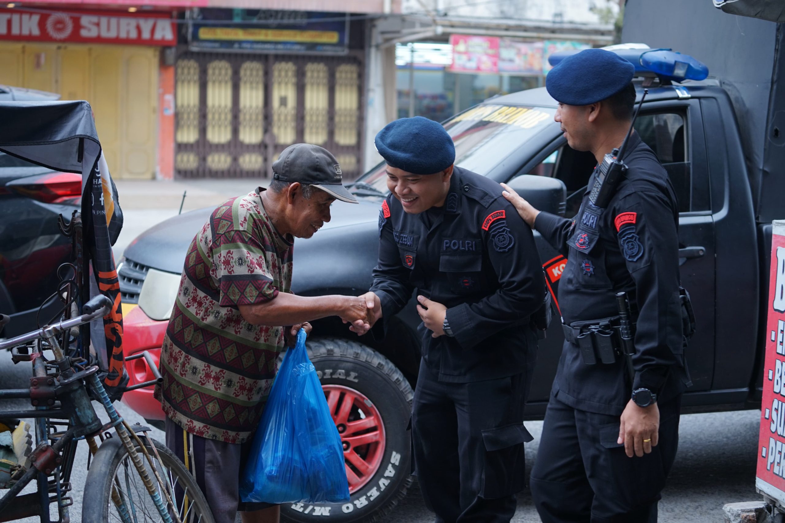 Kegiatan yang dipimpin langsung oleh Kasubsi Siskom Satbrimob Polda Sumut, Ipda Sebastian Sagala, S.H., Personel Brimob menyusuri kawasan Jl. Cemara, Jl. Bilal, dan Jl. Kl. Yos Sudarso untuk mendistribusikan delapan paket sembako kepada para pemulung dan pengayuh becak dayung.