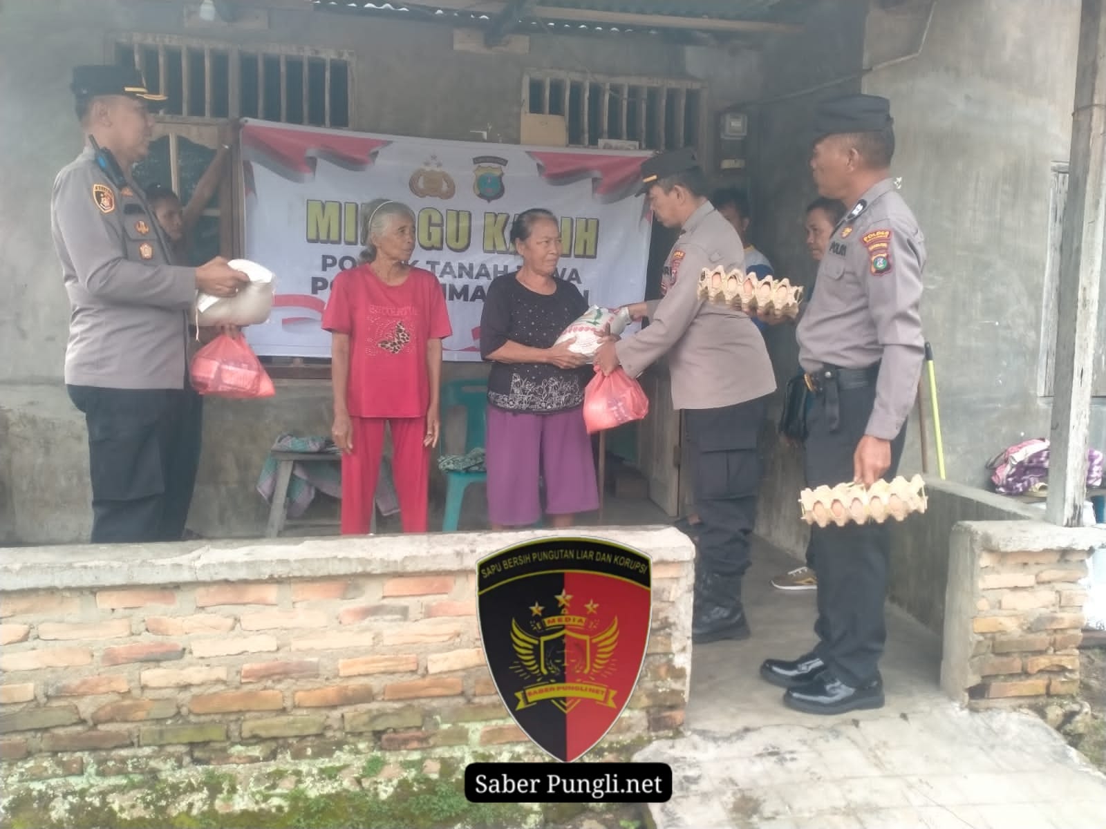 SIMALUNGUN [SaberPungli.net] Hari Minggu bukan berarti Polri libur berbagi kebaikan. Polres Simalungun melalui Kapolsek Tanah Jawa Kompol Asmon Bufitra bersama jajaran personel menggelar program “Minggu Kasih” dengan menyalurkan paket sembako lengkap kepada warga kurang mampu di Huta I, Nagori Bah Jambi III, Kecamatan Tanah Jawa.