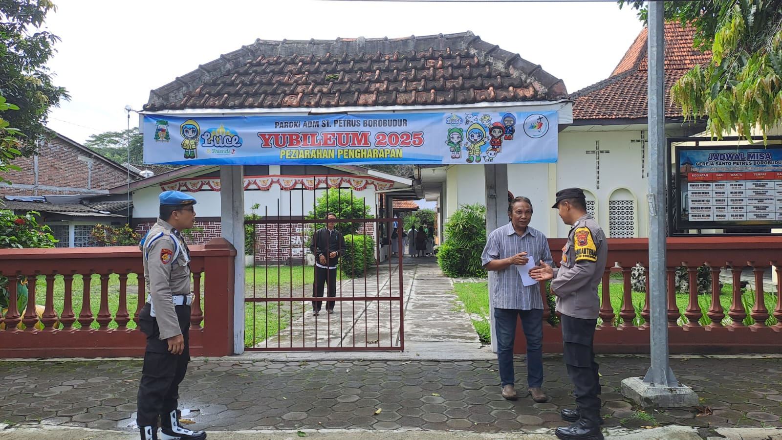 Selain Kapolsek Borobudur, hadir dalam acara itu pemimpin ibadah Romo V. Palma Adihartono. Pr. Serta anggota Polresta Magelang Aipda Indra Kurniawan (PS. Kanit Propam), Aiptu M. Zuhrianto, S.H. (Bhabinkamtibmas), dan Bripka Harwanto (Bhabinkamtibmas) serta jemaat gereja sebanyak 300 orang.