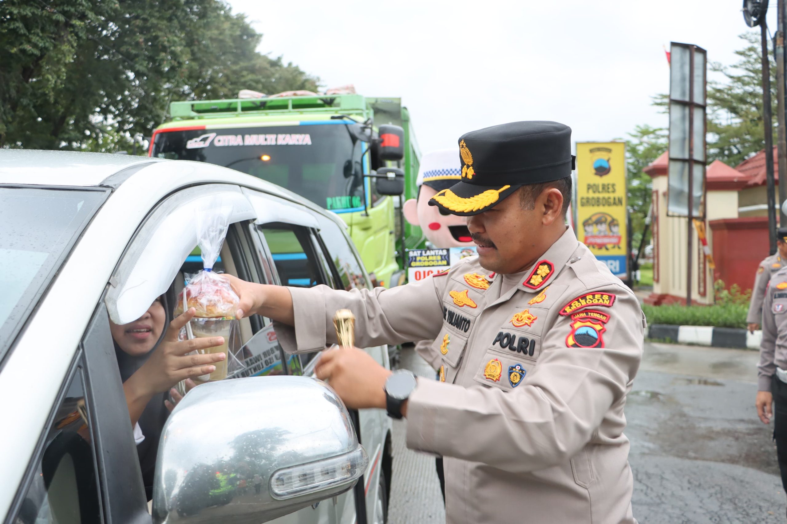 “Hari ini kami dari Polres Grobogan melaksanakan kegiatan pembagian takjil pada pengguna jalan,” ujar Kapolres Grobogan.