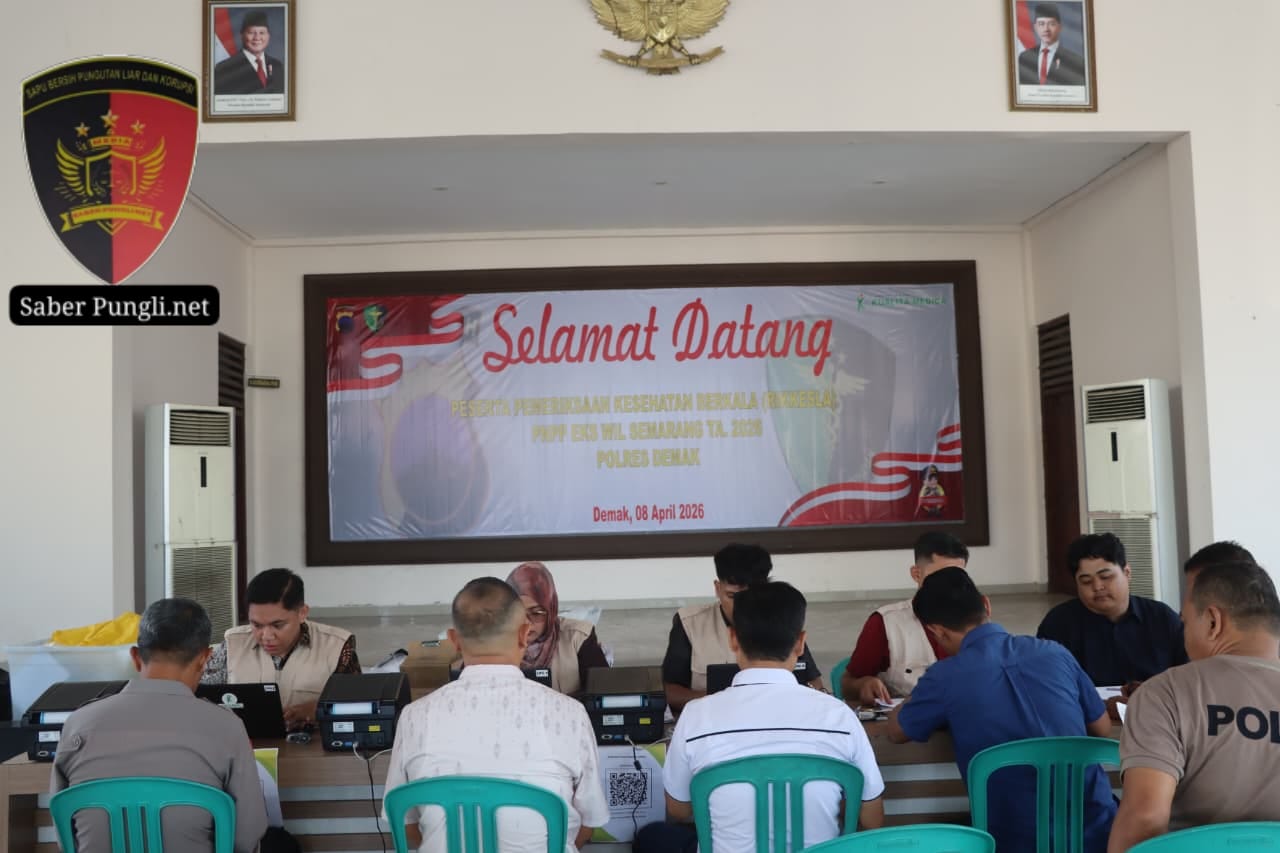 Demak [SaberPungli.net] Polres Demak bekerja sama dengan Rumah Sakit Bhayangkara Semarang menggelar pemeriksaan kesehatan berkala bagi personel di Pendopo Parama Satwika Polres Demak, Rabu (8/4/2026).