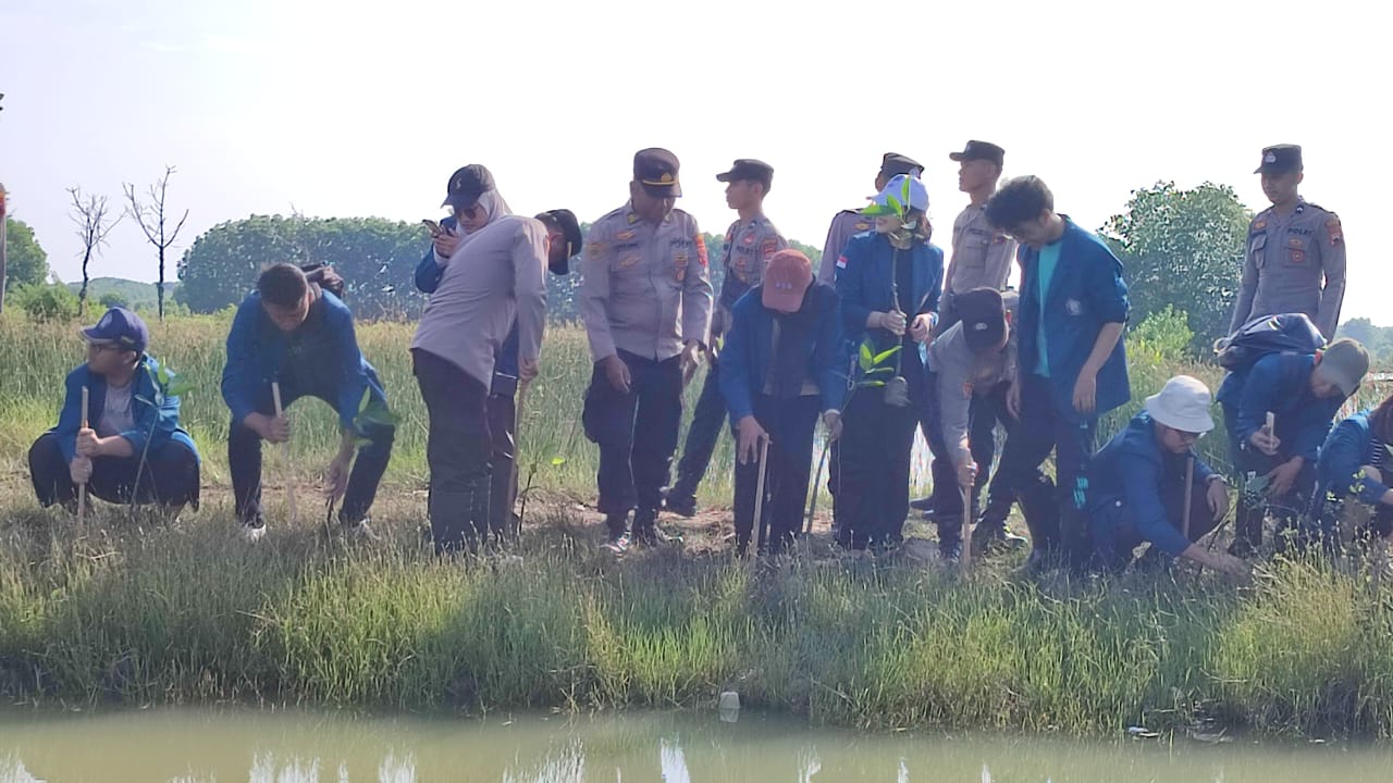 Demak,SaberPungli.net: Polres Demak, Jawa Tengah, melakukan penanaman pohon mangrove untuk mencegah terjadinya abrasi dan banjir rob di Pantai Glagah Wangi, Desa Tambakbulusan, Kecamatan Karangtengah, Kabupaten Demak.