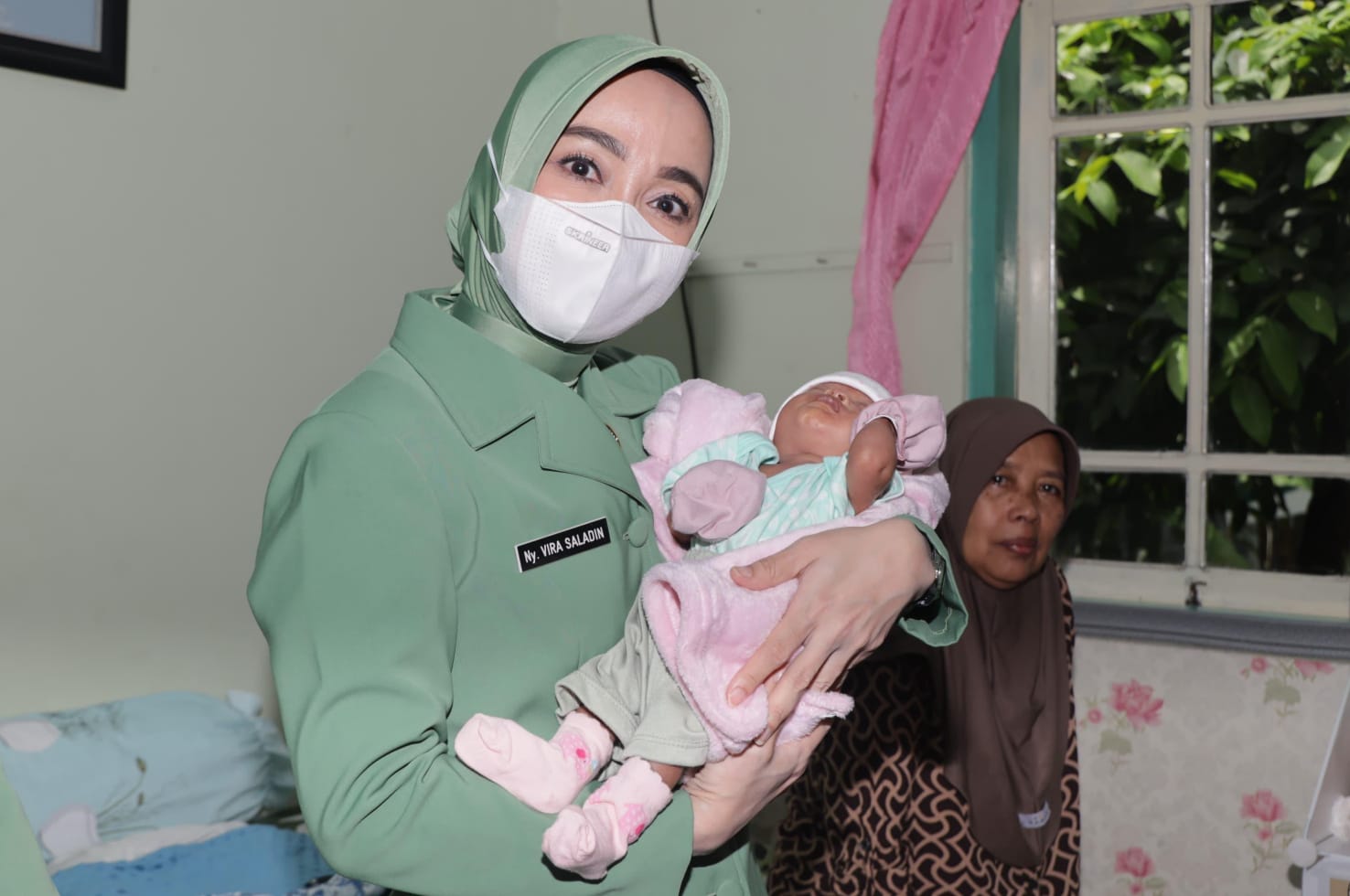Selang berapa lama, seketika tangis Khalisa terhenti dan sorot matanya yang cantik tertuju pada sosok Ketua Persit KCK PD V/Brawijaya, Ny. Vira Rudy Saladin yang siang ini datang menjenguk di rumahnya, Desa Ketanon, Kecamatan Kedungwaru, Kabupaten Tulungagung, Selasa (18/2/2025). Tak sendiri, Vira juga didampingi oleh Ketua Persit KCK Koorcab Rem 081, Ny. Frieda Untoro, Ketua Persit KCK Cabang XXI Dim 0807, Ny. Icha M. Nashir, dan Ketua Persit KCK Cabang XXV Dim 0809, Ny. Titiana Aris Setiawan.