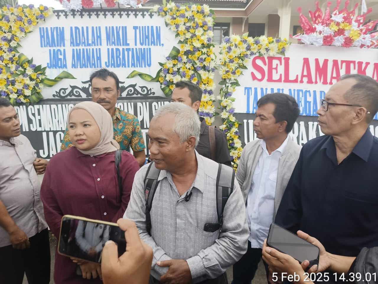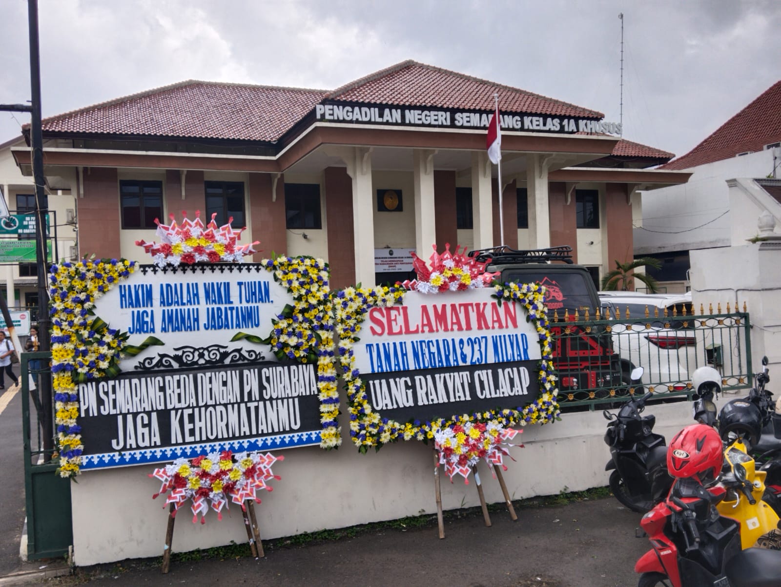 Karena kedatangannya di PN Semarang dalam rangka mengingatkan agar hakim bisa memutuskan seadil-adilnya. Karyawan dan Pengurus Yayasan memberikan karangan bunga bertuliskan harapan tersebut di depan Gedung PN Semarang.