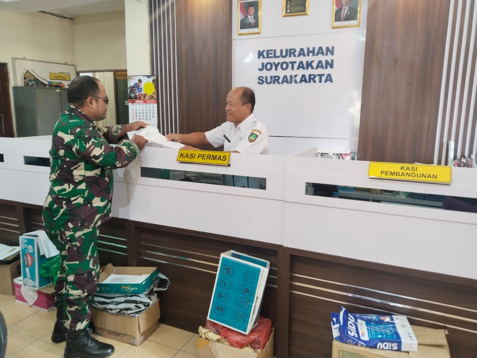 Surakarta,SaberPungli.net:Babinsa Kelurahan Joyotakan Koramil 03/Serengan Kodim 0735/ Surakarta Serka Rumbawa melaksanakan Pengumpulan Data Teritorial ( Puldata Ter ) bersama Bapak Joko Purwanto selaku Kasi Pem dan Trantib bertempat di Kantor Kelurahan Joyotakan Serengan Kota Surakarta, Kamis 06/02/2025, Pukul 09.00 Wib