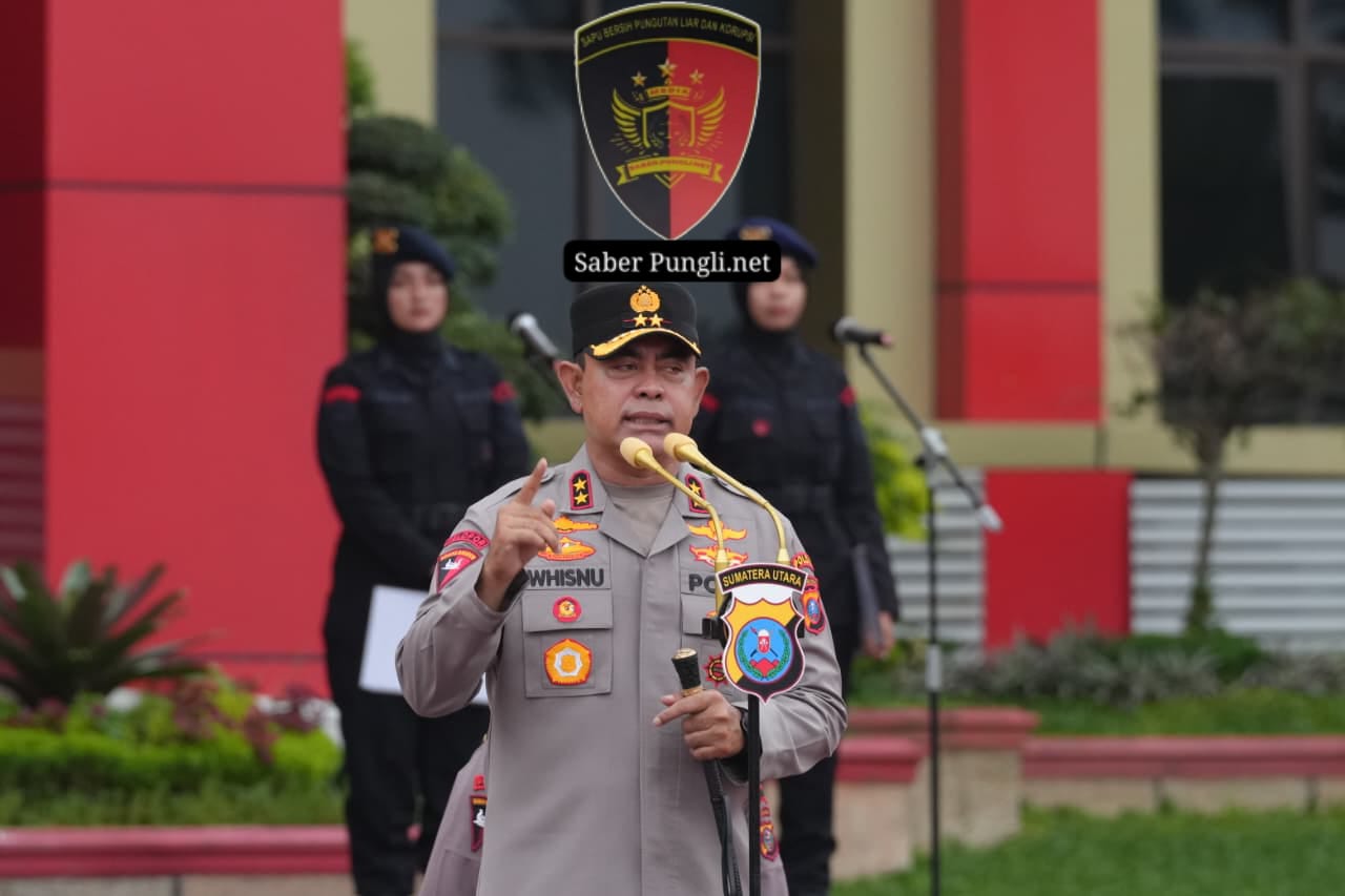 Medan [SaberPungli.net] Senin (3/11/2025) — Kapolda Sumatera Utara Irjen Pol Whisnu Hermawan Februanto, S.I.K., M.H., memimpin apel gabungan personel Polda Sumut di Lapangan Depan Mako Polda Sumut, Senin (3/11/2025). Apel tersebut diikuti oleh para Pejabat Utama (PJU), Pamen, Pama, Bintara, Tamtama, serta ASN Polda Sumut.