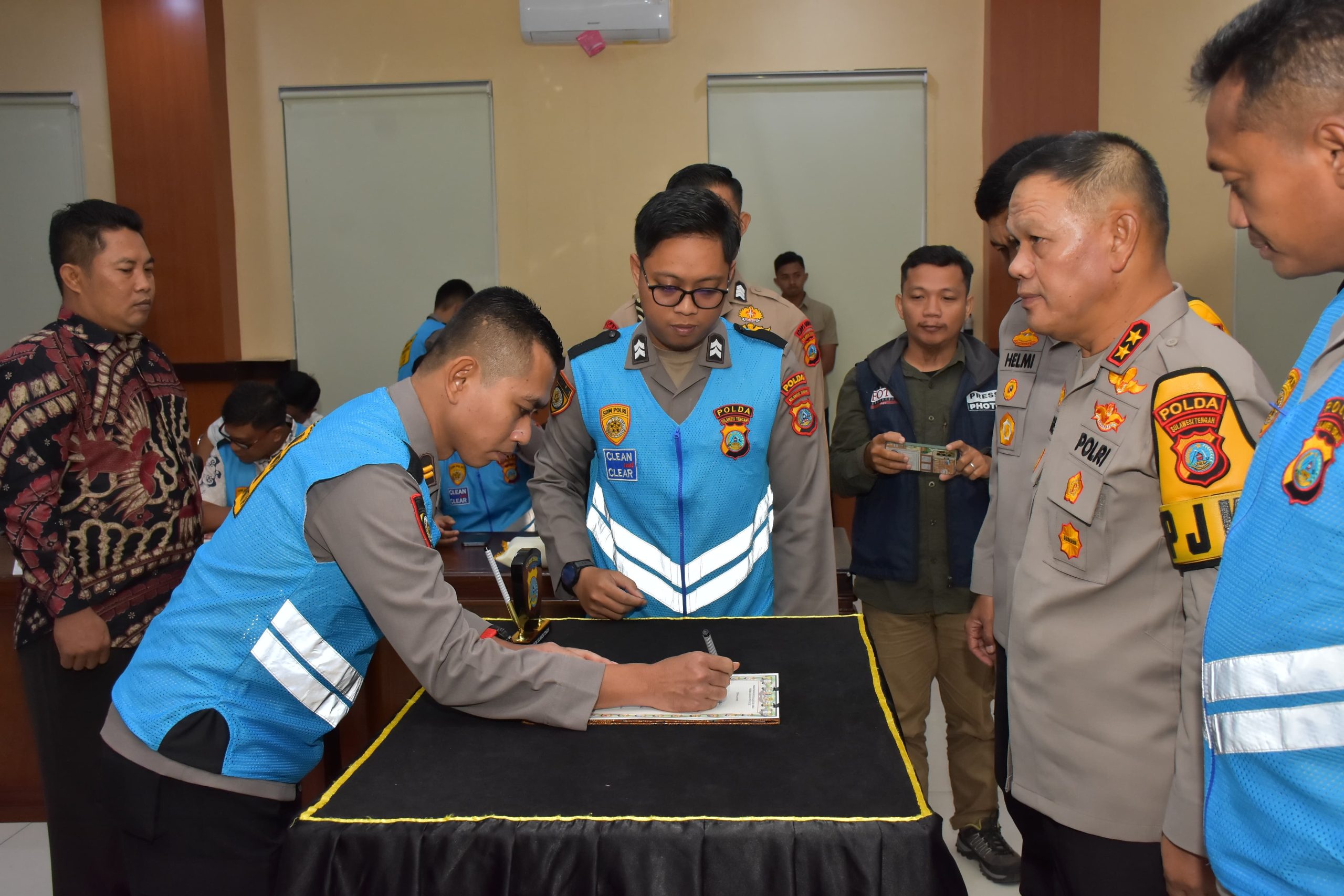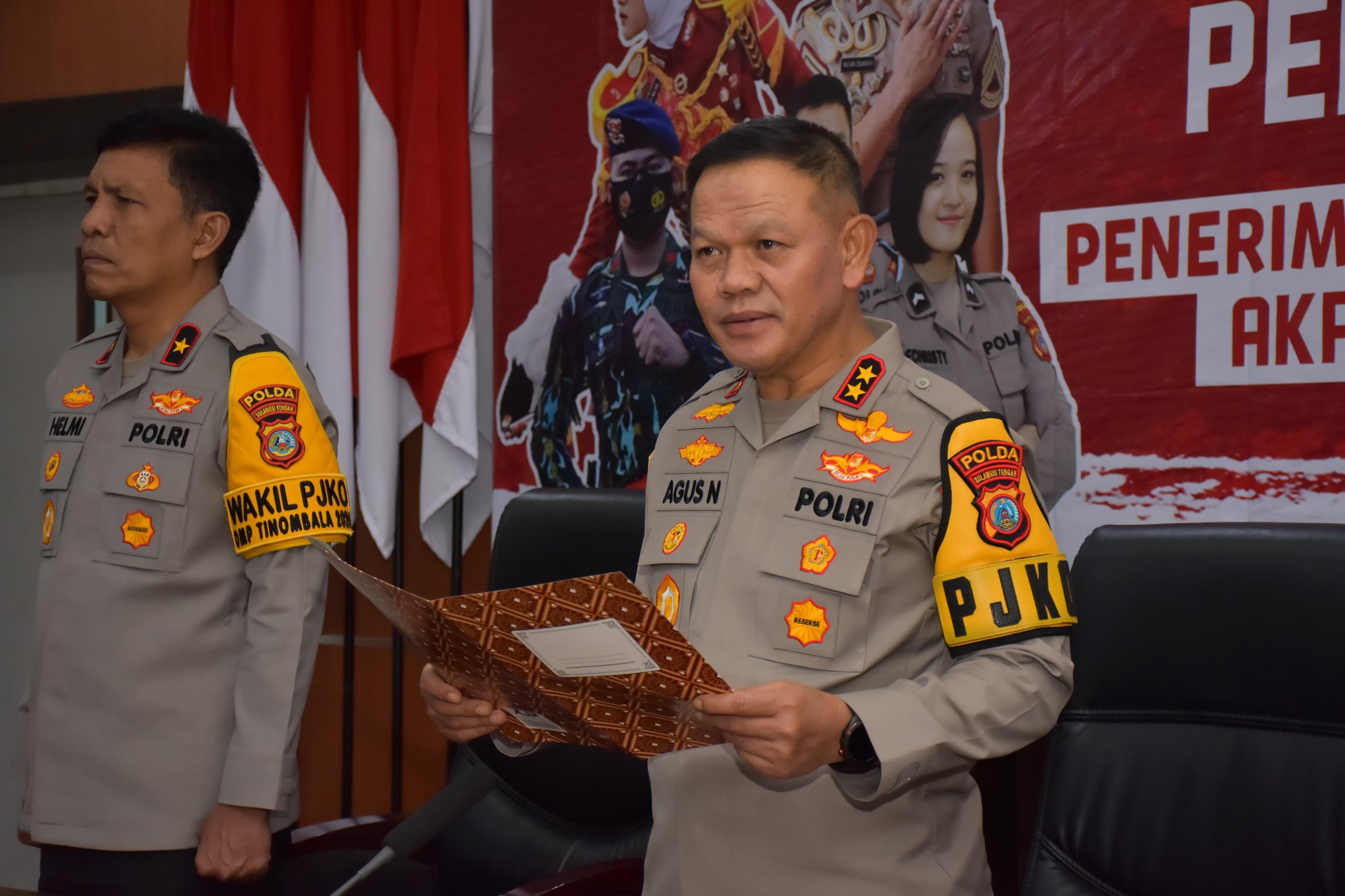 PALU,SaberPungli.net:Kapolda Sulteng Irjen Pol Dr. Agus Nugroho, S.I.K., S.H., M.H memimpin pelaksanaan Pakta Integritas dan Pengambilan sumpah Penerimaan Terpadu Anggota Polri Tahun Anggaran 2025 di Aula Rupatama Polda Sulteng, Jumat (7/3/2025)