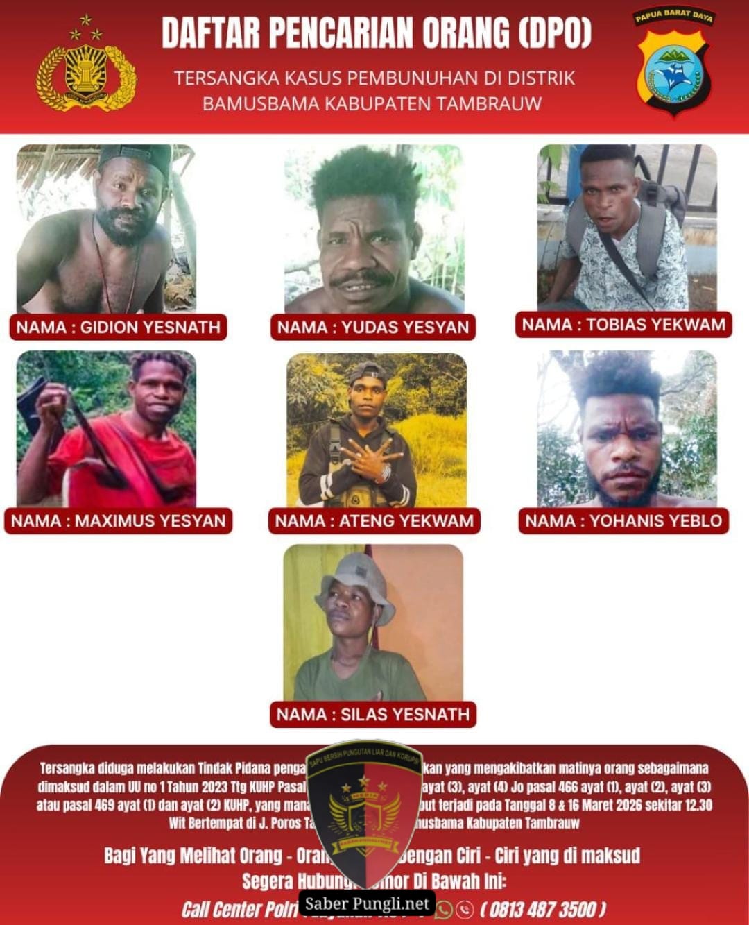 Polda PBD Tetapkan 7 DPO Kasus Pembunuhan di Tambrauw: Polisi Dalami Jaringan Pelaku, Ungkap Daftar Buronan Pembunuhan
