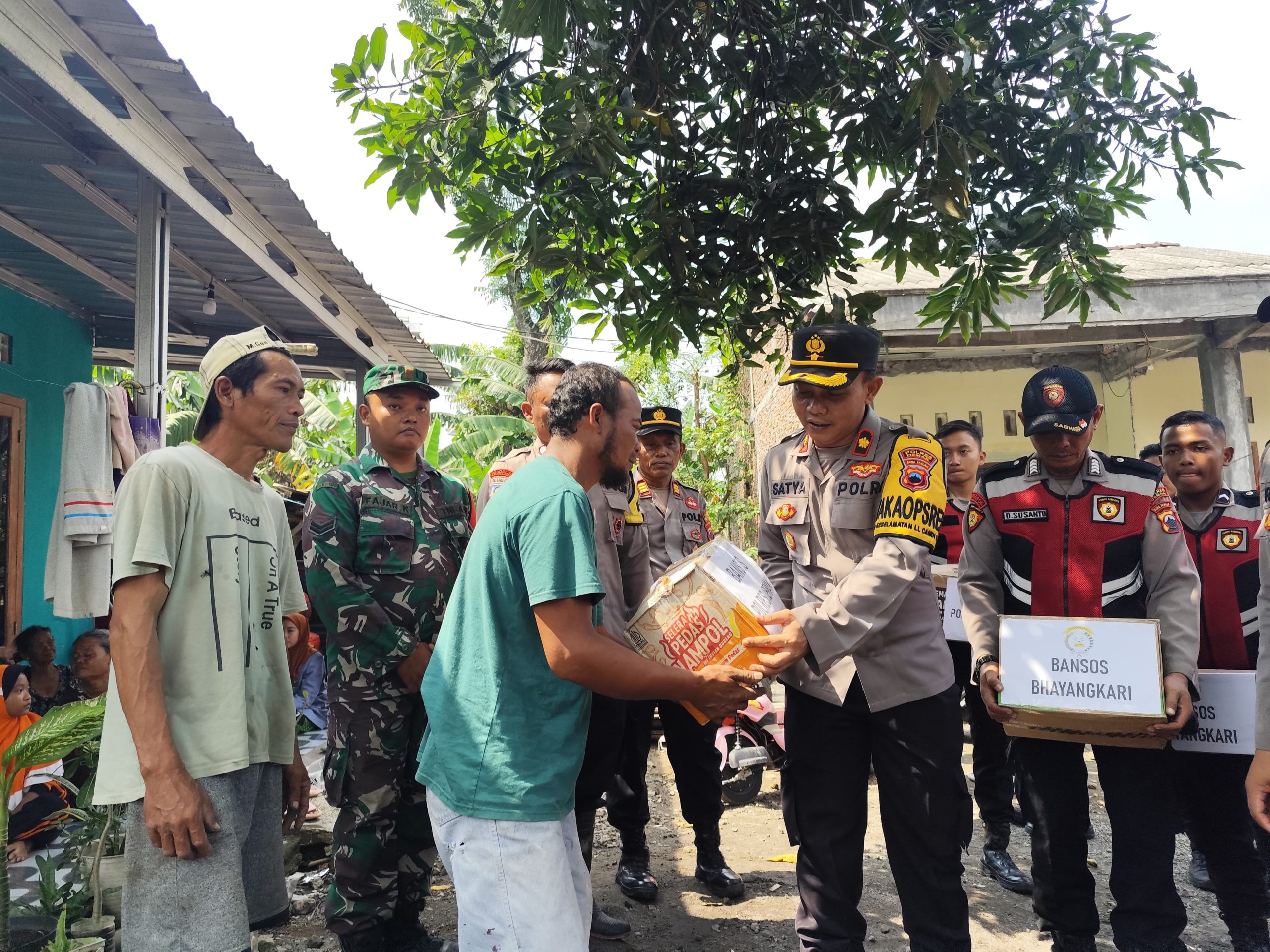 Wakapolres Demak, Kompol Satya Adi Nugraha, mewakili Kapolres Demak, AKBP Ari Cahya Nugraha, beserta anggota Polres Demak, mengunjungi dan memberikan bantuan kepada Basiroh (39), korban kebakaran pada Jum’at (21/2/2025).