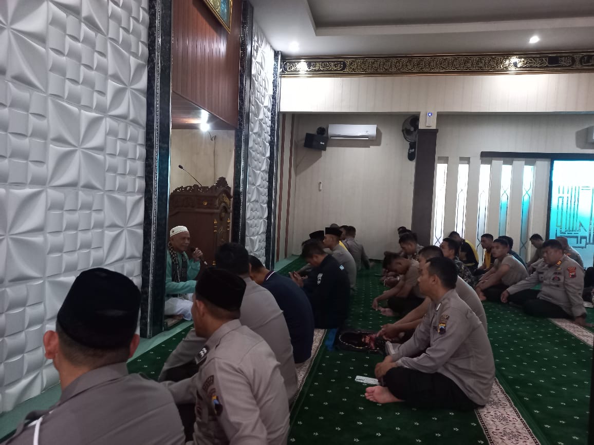 Shalat gaib dilakukan di Masjid Uswatun Hasanah Polres Demak dipimpin oleh Kyai Sobari diikuti oleh pejabat utama, anggota Polres Demak dan masyarakat sekitar, Jum’at (29/8/2025).