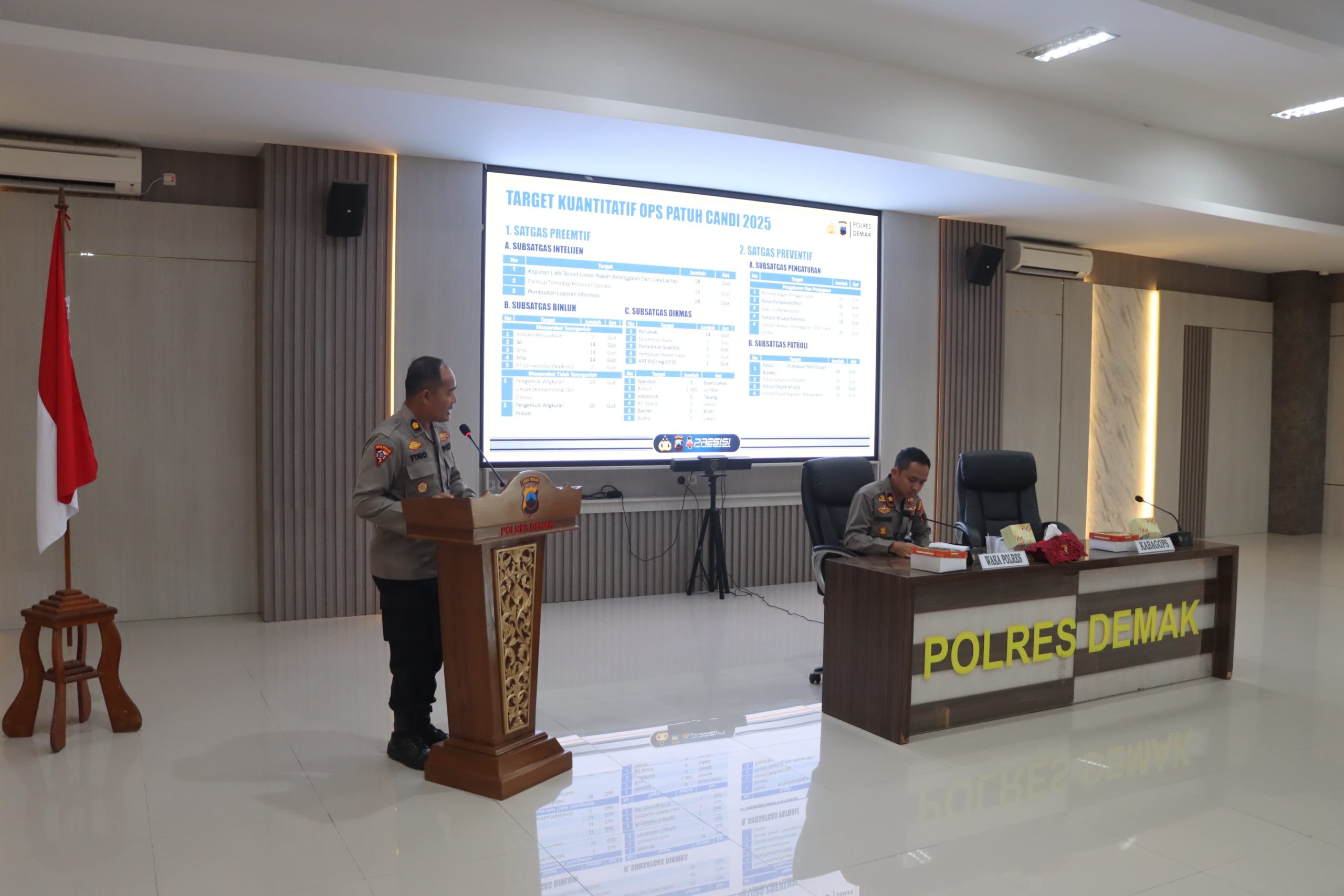 Demak, SaberPungli.net: Polres Demak menggelar Latihan Pra Operasi (Latpra Ops) Patuh Candi 2025 di Aula Wicaksana Laghawa Polres Demak, Jum’at (11/7/2025).
