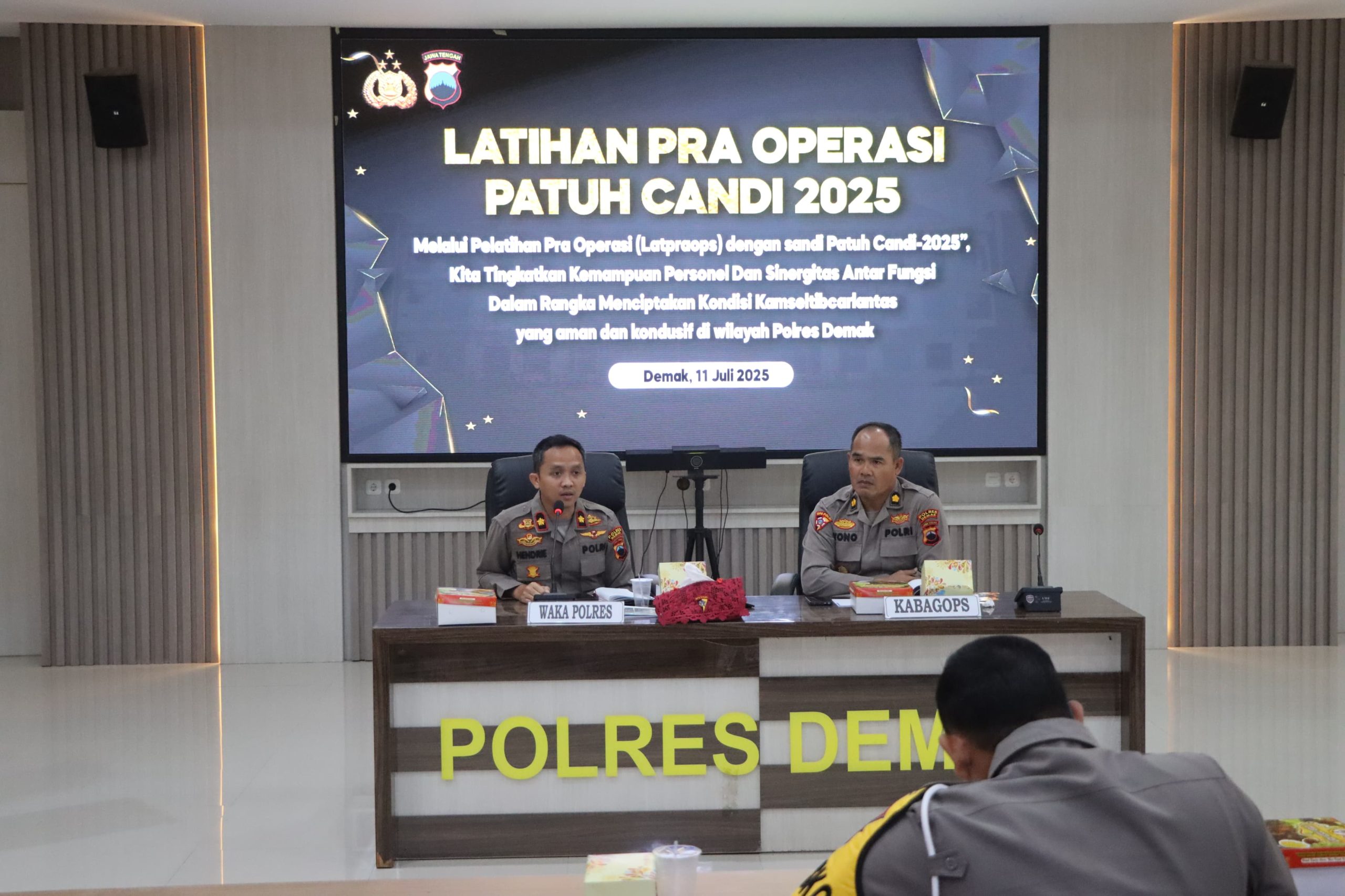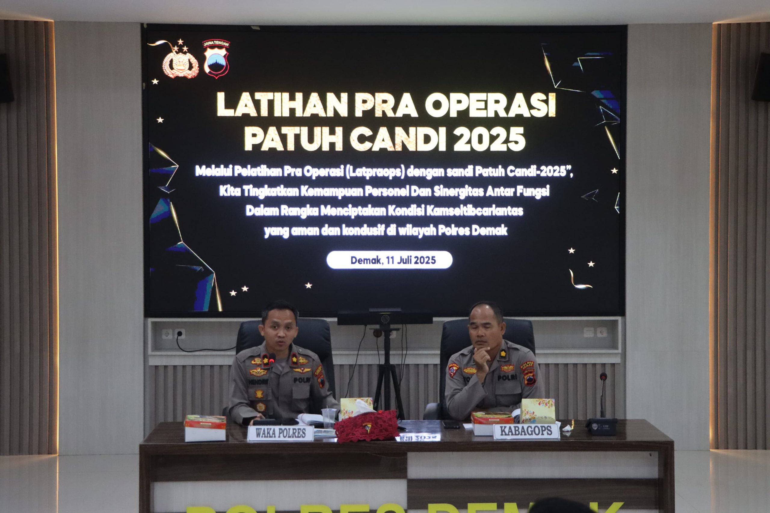 Demak, SaberPungli.net: Polres Demak menggelar Latihan Pra Operasi (Latpra Ops) Patuh Candi 2025 di Aula Wicaksana Laghawa Polres Demak, Jum’at (11/7/2025).