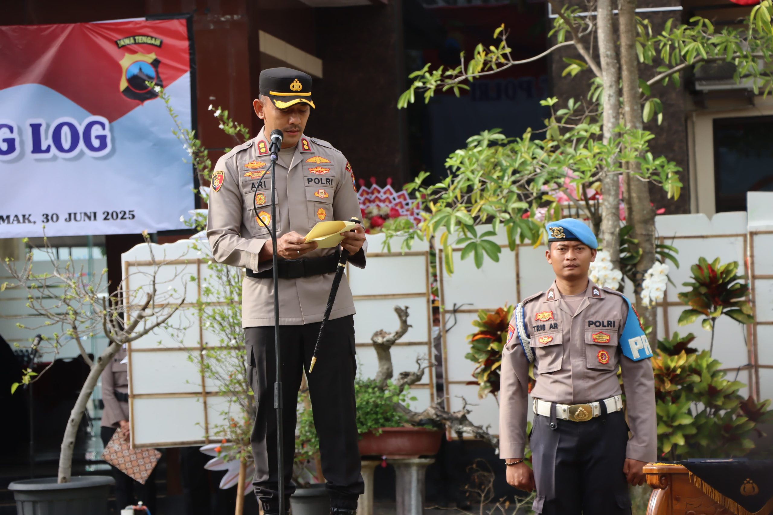 Demak – Kepolisian Resor (Polres) Demak, Jawa Tengah menggelar Upacara Penyerahan Jabatan Kepala Bagian Logistik (Kabag Log) dan Upacara Kenaikan Pangkat (UKP) bagi anggota Polres Demak periode 1 Juli 2025 di Lapangan Wicaksana Laghawa, Senin (30/6/2025) Mapolres setempat.