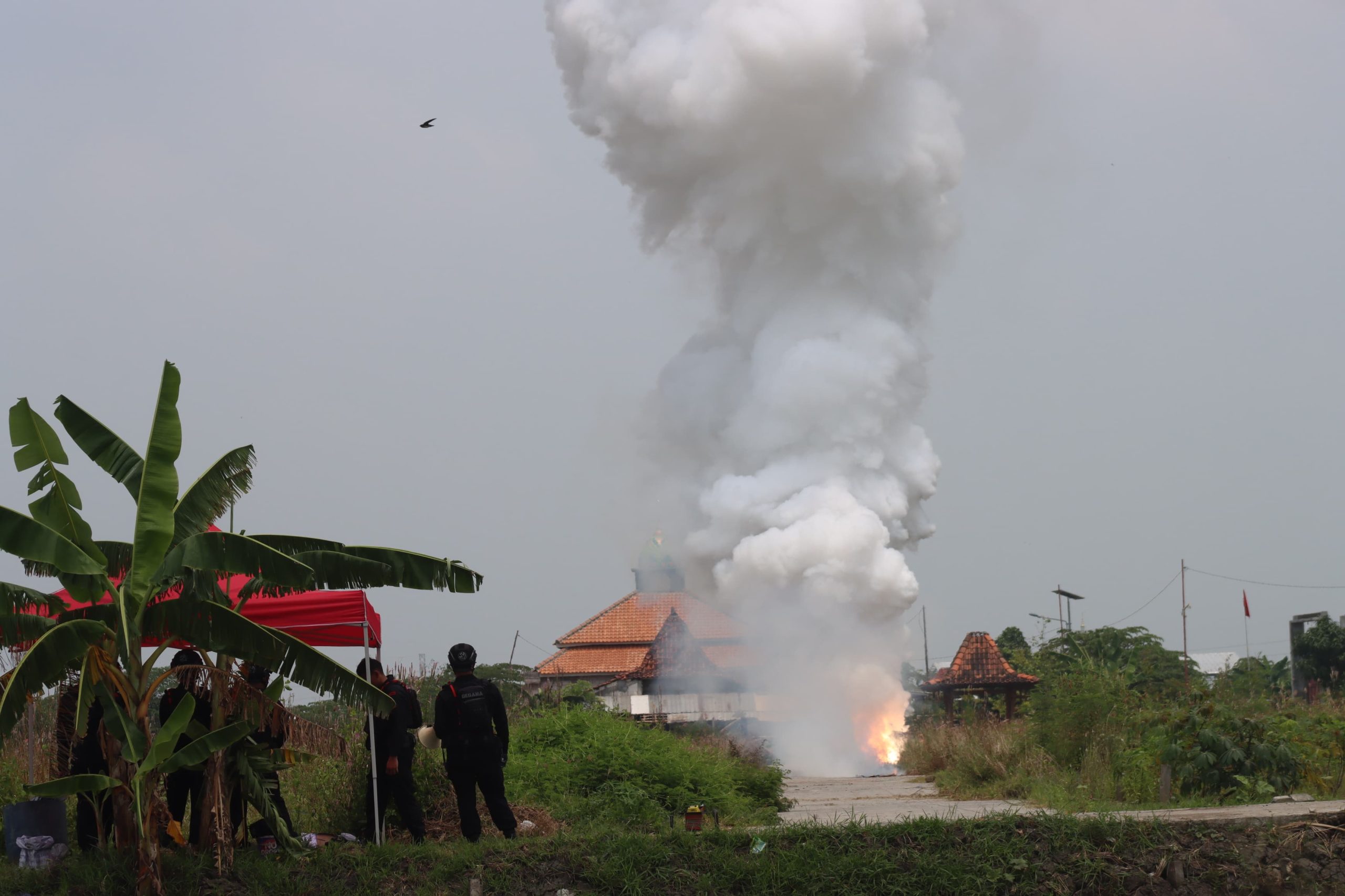 “Barang-bukti sebagian kami ambil sebagai sempel yang akan kami bawa ke Labfor dan sisanya kami lakukan pemusnahan hari ini oleh tim Gegana Sat Brimob Polda Jateng ditempat yang dianggap aman,” ujar Kuseni.