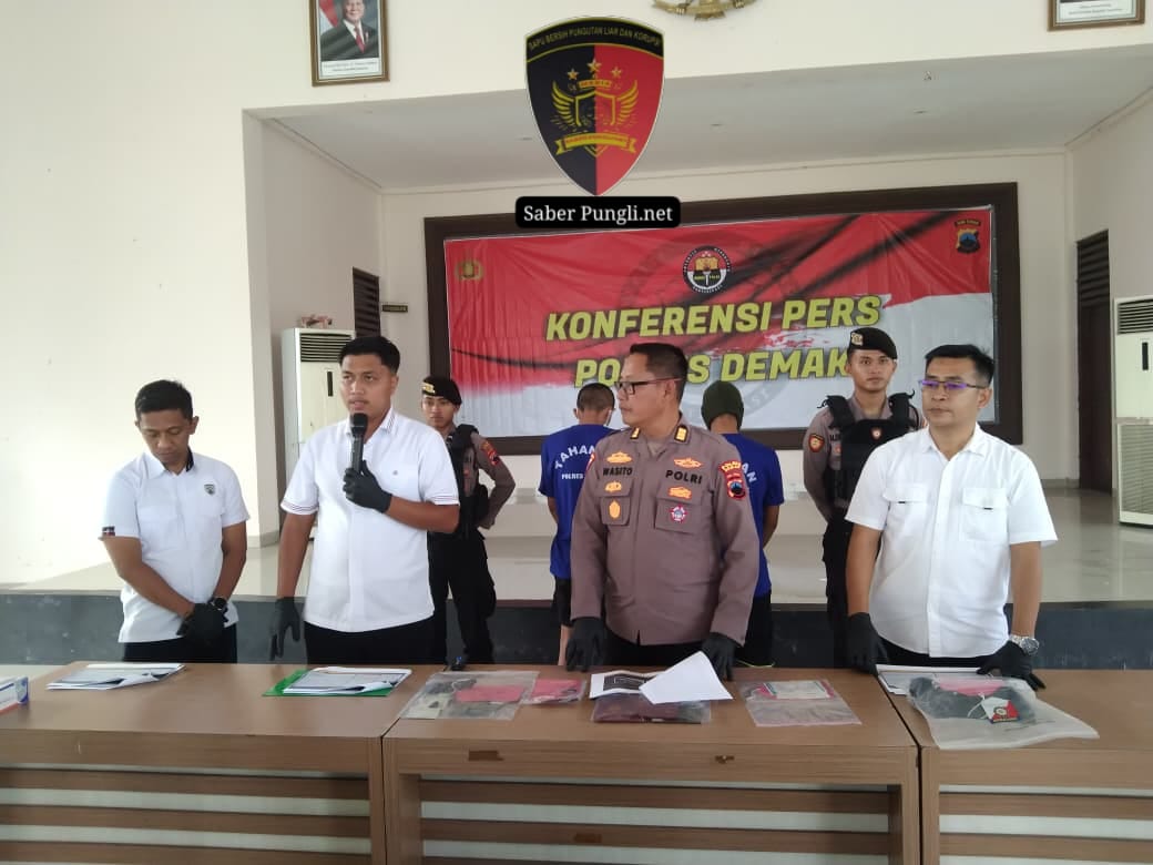 Penangkapan ini diumumkan Kasat Reskrim Polres Demak, Iptu Anggah Mardwi Pitriyono, saat konferensi pers di Pendopo Parama Satwika Mapolres Demak, Rabu (15/10) siang.