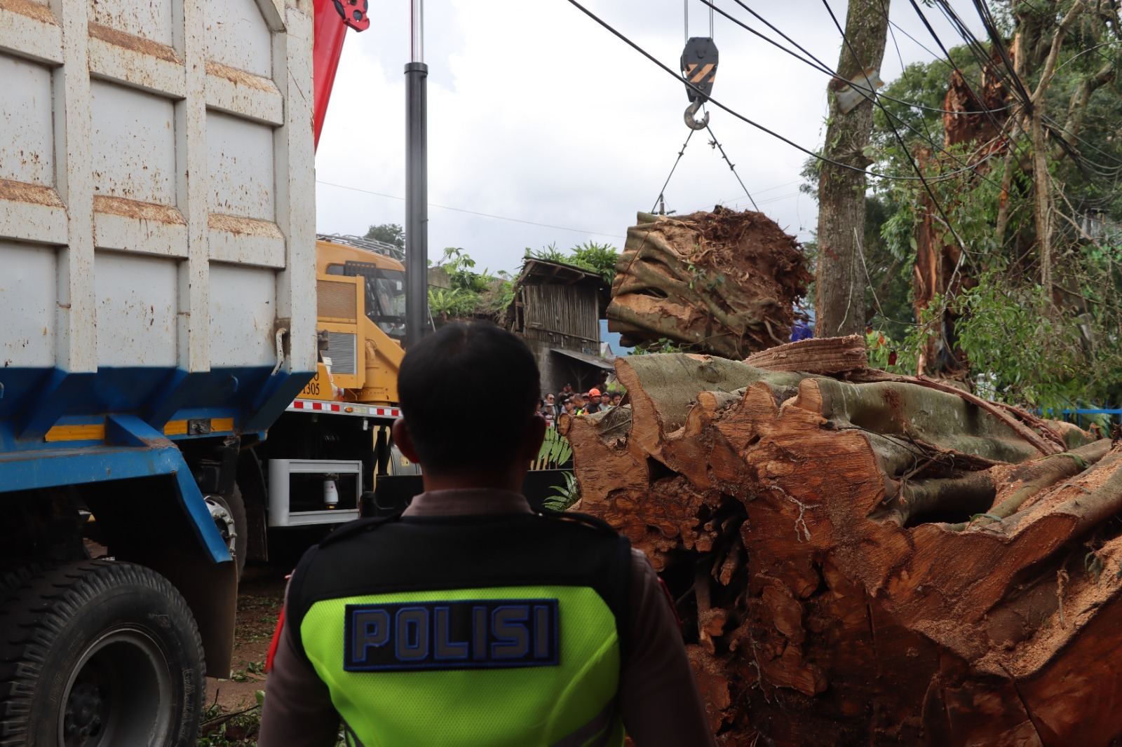 Kapolres Wonosobo, AKBP M. Kasim Akbar Banrtilan, S.I.K., M.M., yang turun langsung ke lokasi kejadian, menjelaskan bahwa petugas gabungan dari Polres Wonosobo, BPBD, SAR, dan masyarakat sekitar segera melakukan evakuasi. Proses sempat terkendala karena crane pertama tidak mampu mengangkat batang pohon yang berdiameter sekitar 2 meter tersebut.