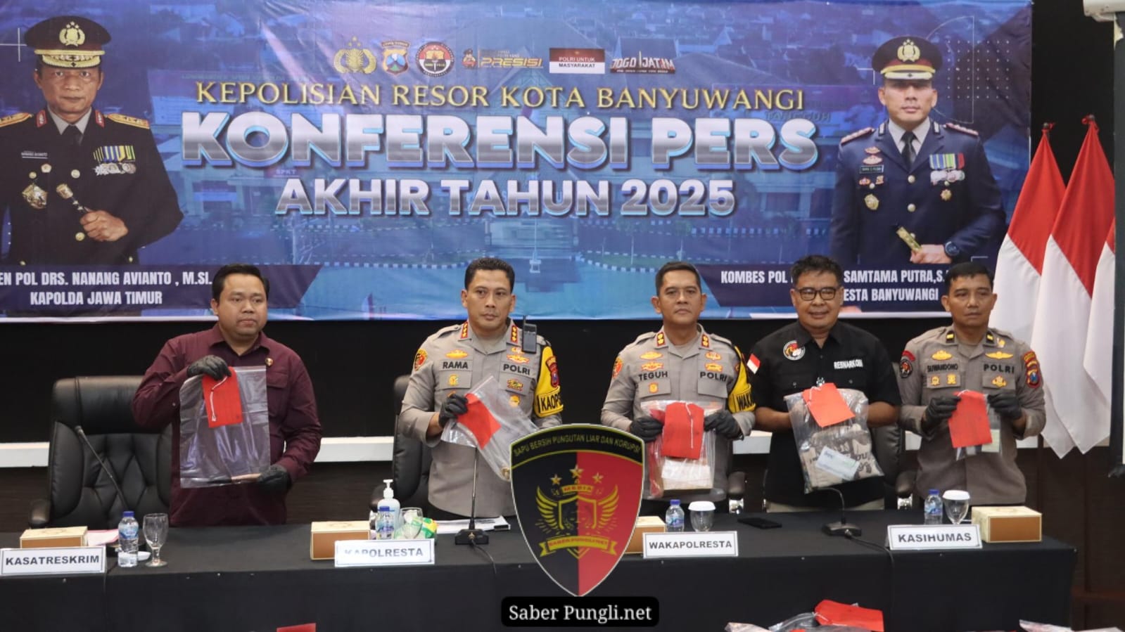 BANYUWANGI [SaberPungli.net] Polresta Banyuwangi Polda Jawa Timur (Jatim) berhasil menyelesaikan 1.281 perkara dari 1.433 laporan Polisi sepanjang tahun 2025.