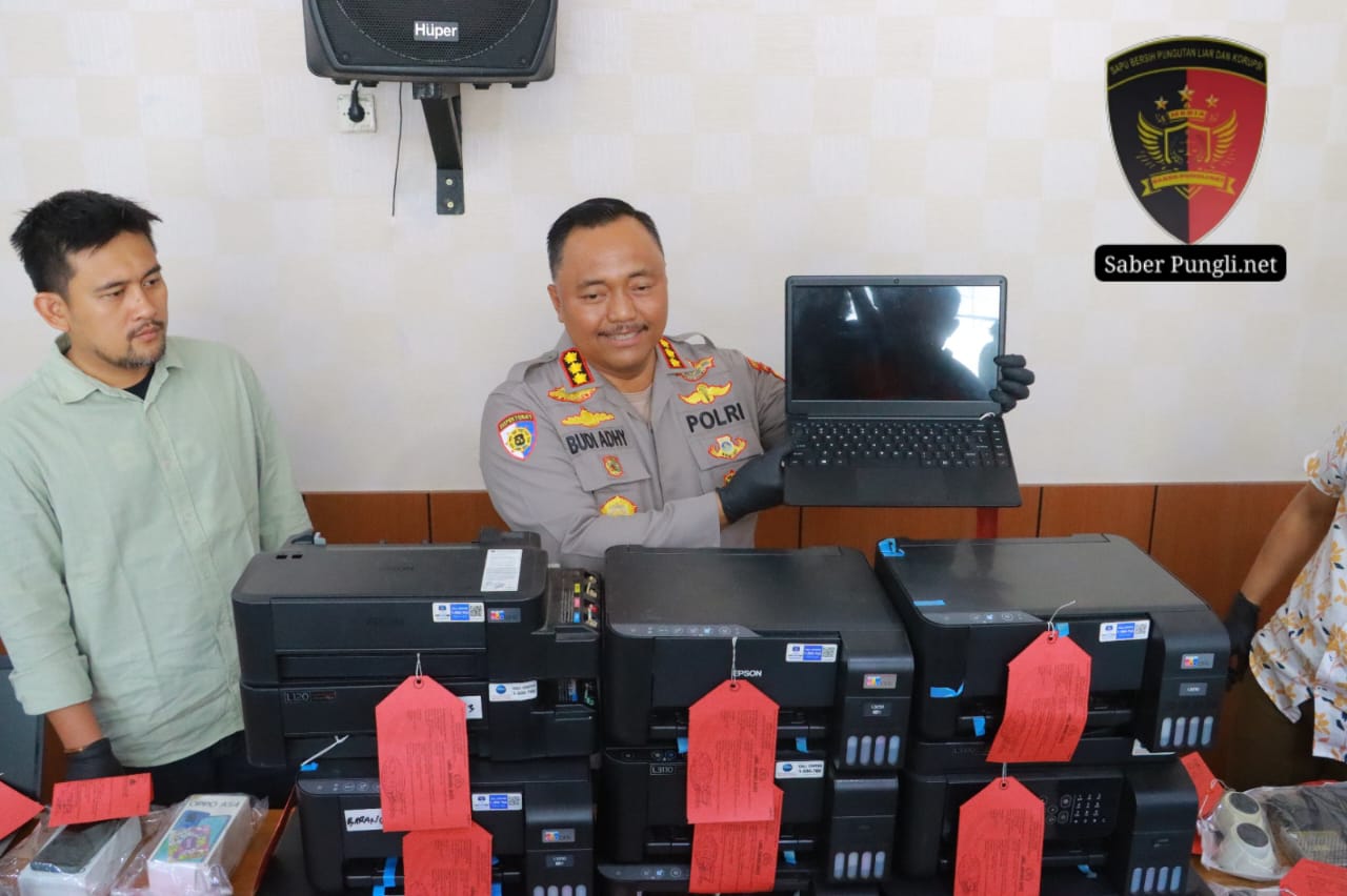 “Dari hasil pengungkapan sejak September hingga Oktober, total ada 28 TKP dengan 11 tersangka yang sudah kami amankan. Barang bukti yang disita di antaranya 15 unit sepeda motor, 11 printer, dua laptop, lima STNK palsu, sejumlah uang, dan peralatan kejahatan seperti kunci letter Y,” ungkap Kapolresta.