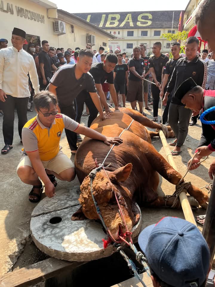 “Salat Iduladha dan pemotongan hewan kurban menjadi sarana untuk mempererat tali silaturahmi antara anggota Polri dengan masyarakat. Kegiatan ini tidak hanya berfokus pada ritual keagamaan, tetapi juga berbagi kebahagiaan dengan warga sekitar,” ujar Kompol Agung.