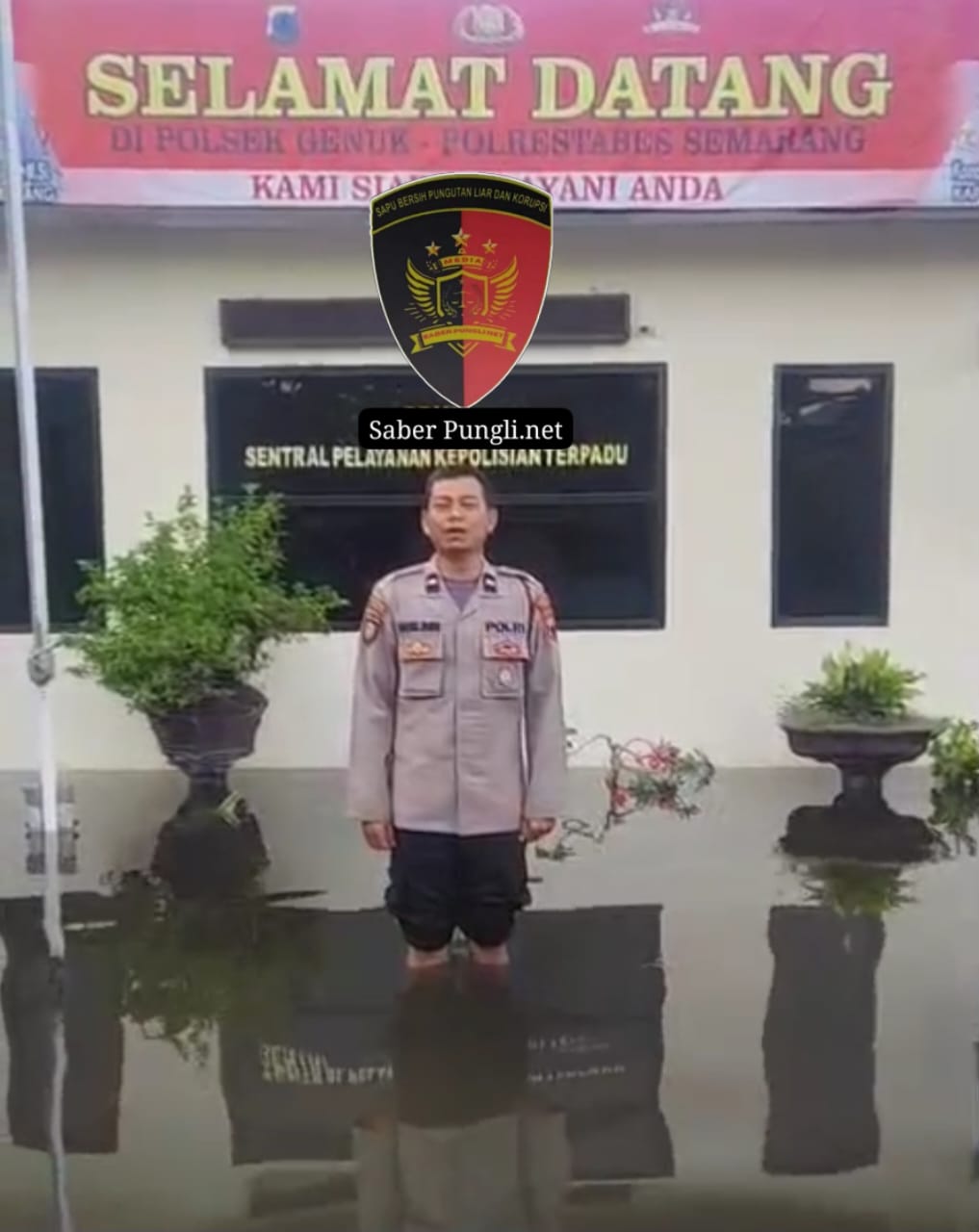 Semarang [SaberPungli.net] 23 Oktober 2025, Hujan deras yang mengguyur Kota Semarang dalam beberapa hari terakhir menyebabkan sejumlah wilayah tergenang banjir, termasuk kawasan Polsek Genuk.