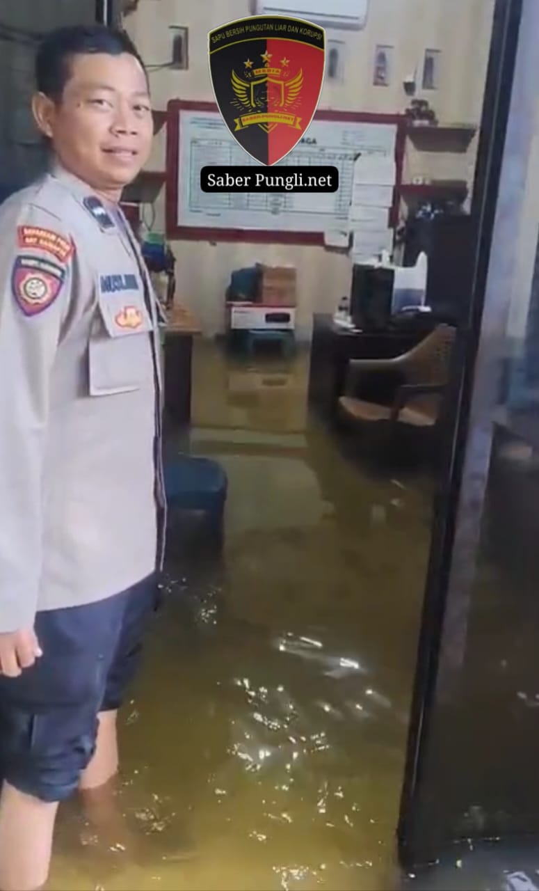 Air setinggi 20–40 cm sempat menggenangi halaman dan sebagian ruangan di lingkungan kantor polisi tersebut.